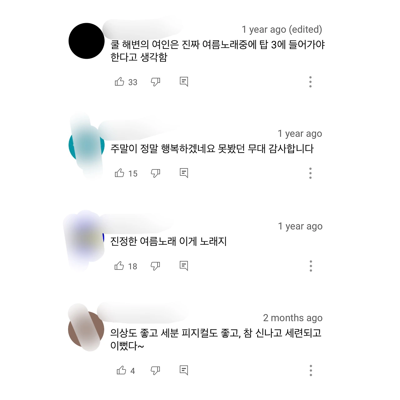 쿨의 ” 해변의 여인 “을 떠올리는데요.