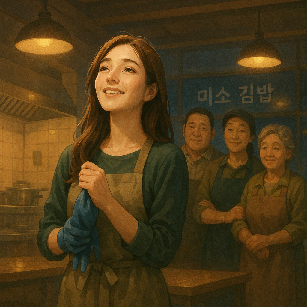서툰 손으로 김밥 재료를 정리하는 모습을 보며 고개를 끄덕였다.