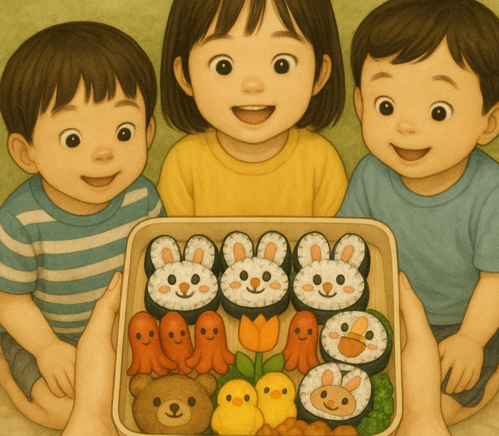토끼, 곰돌이 모양, 문어 소시지, 병아리 주먹밥...