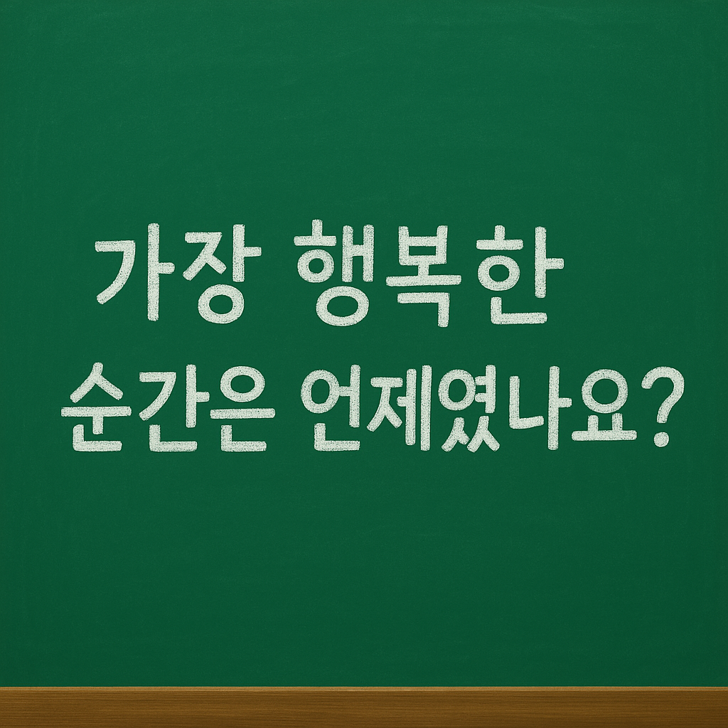 "오늘의 주제인 <가장 행복했던 또는 행복한 순간은 언제인가요?>에 대해 돌아가며 이야기하도록 하겠습니다."