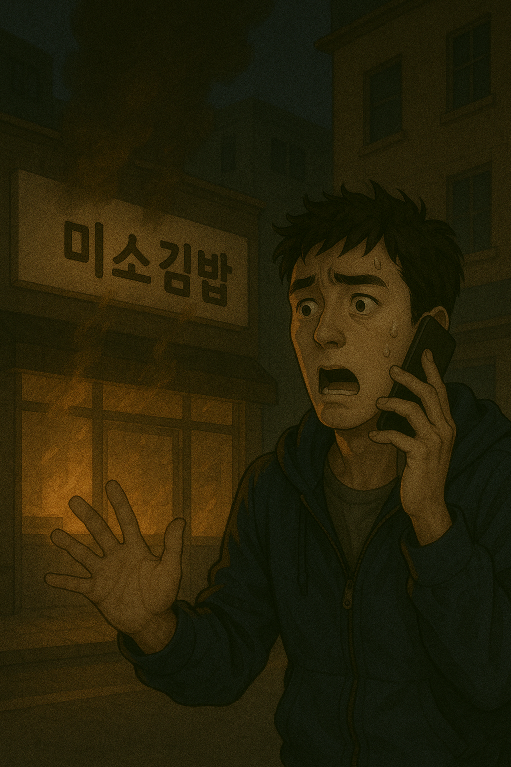 김밥틀, 조리대, 재료통… 하나하나가 불길 속에서 형체를 잃어갔다.