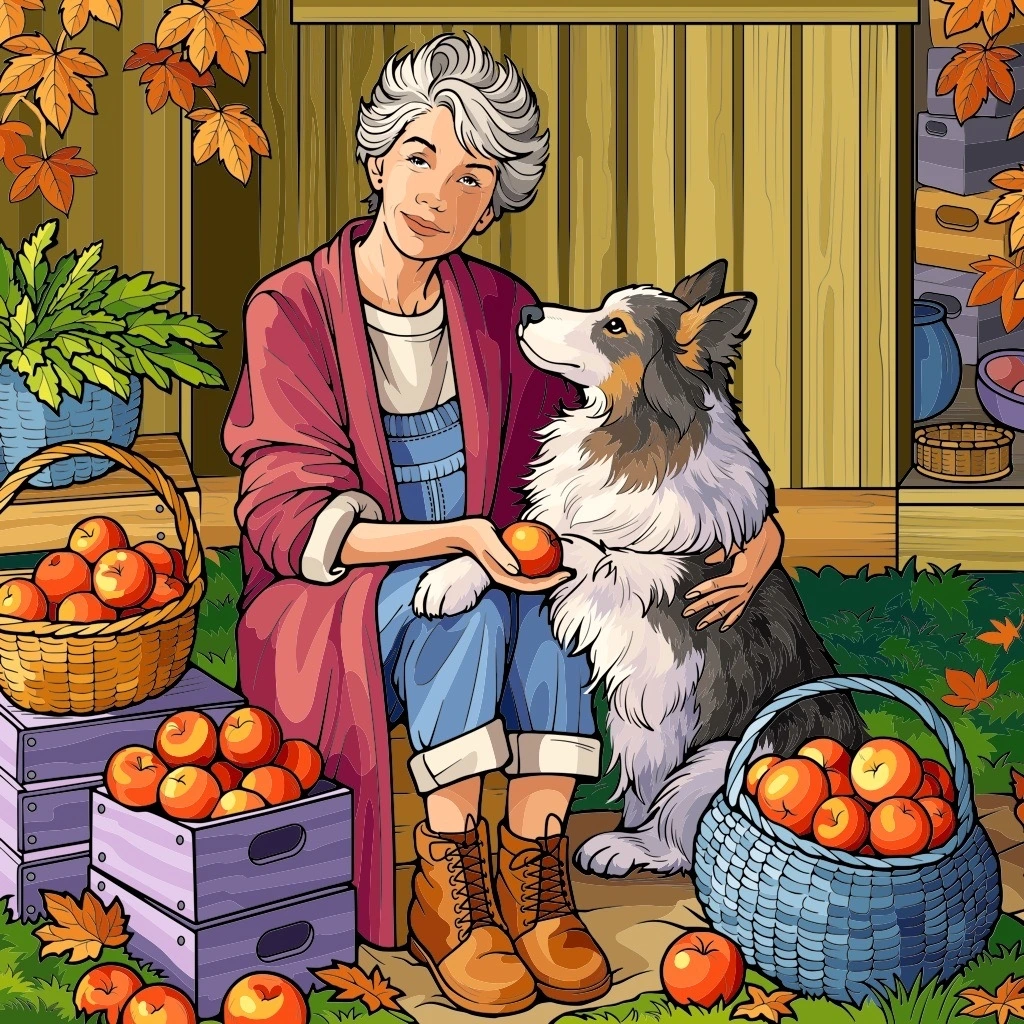 한 해의 결실을 손에 쥔 채, 여인은 말없이 미소 짓는다.