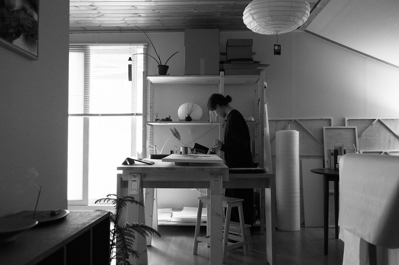 취향이 영향을 주는 것 같아요. 저는 고아하며 자연스러운 것들을 좋아해요. 이런 취향을 그림에 드러내고 작업물로 만들어요. 그리고 제목까지 지을 수 있어요. 완벽하죠.
