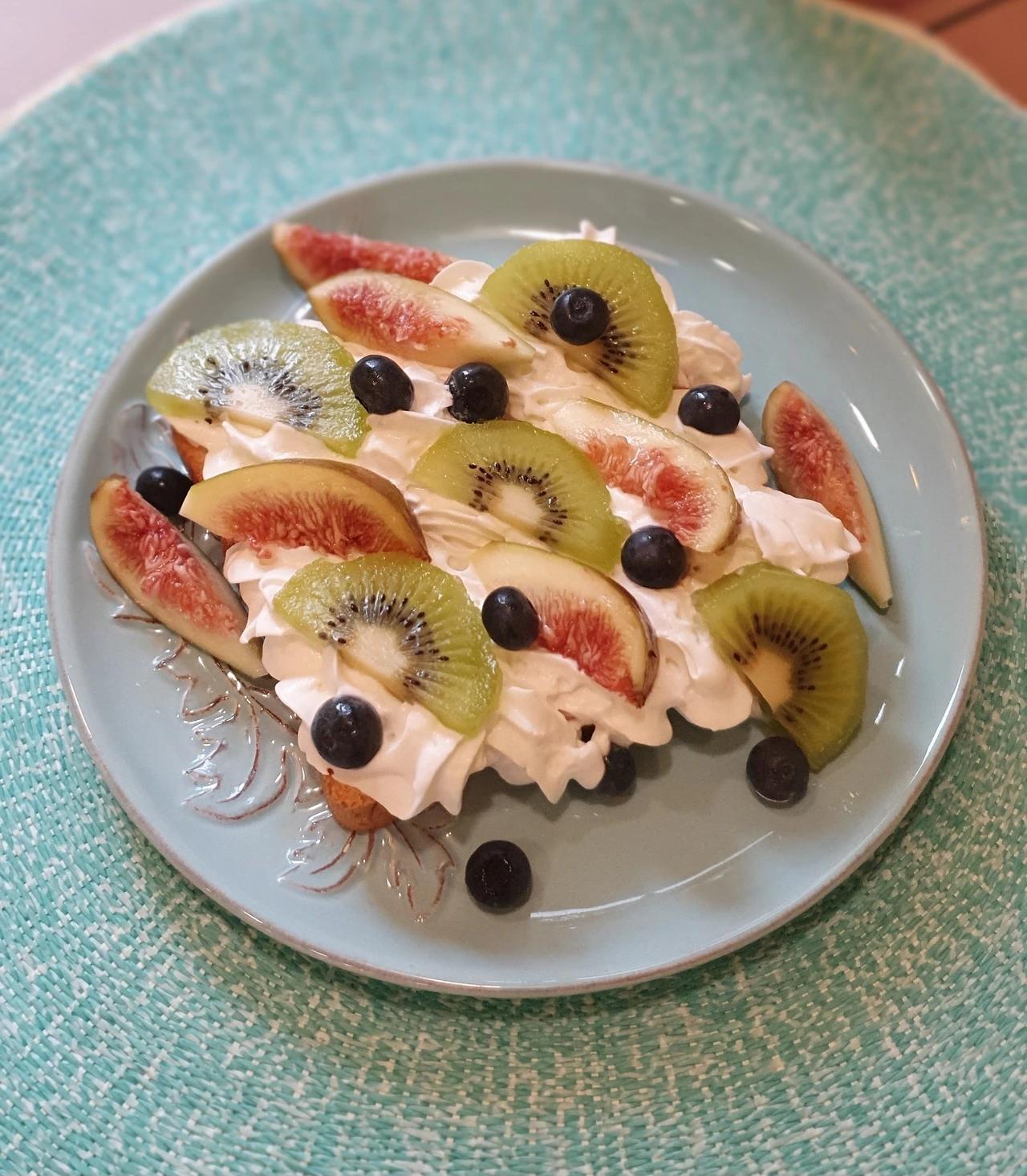 2. *휘핑크림을 충분히 뿌리고 무화과 키위 블루베리등 좋아하는 과일을 컬러를 생각하면서 올리고