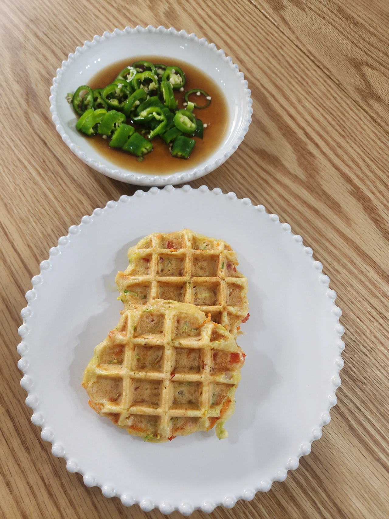 와플 만들기에 푹 빠져서 여러 가지 시도를 하던 끝에 야채 와플을 만들어 놓고