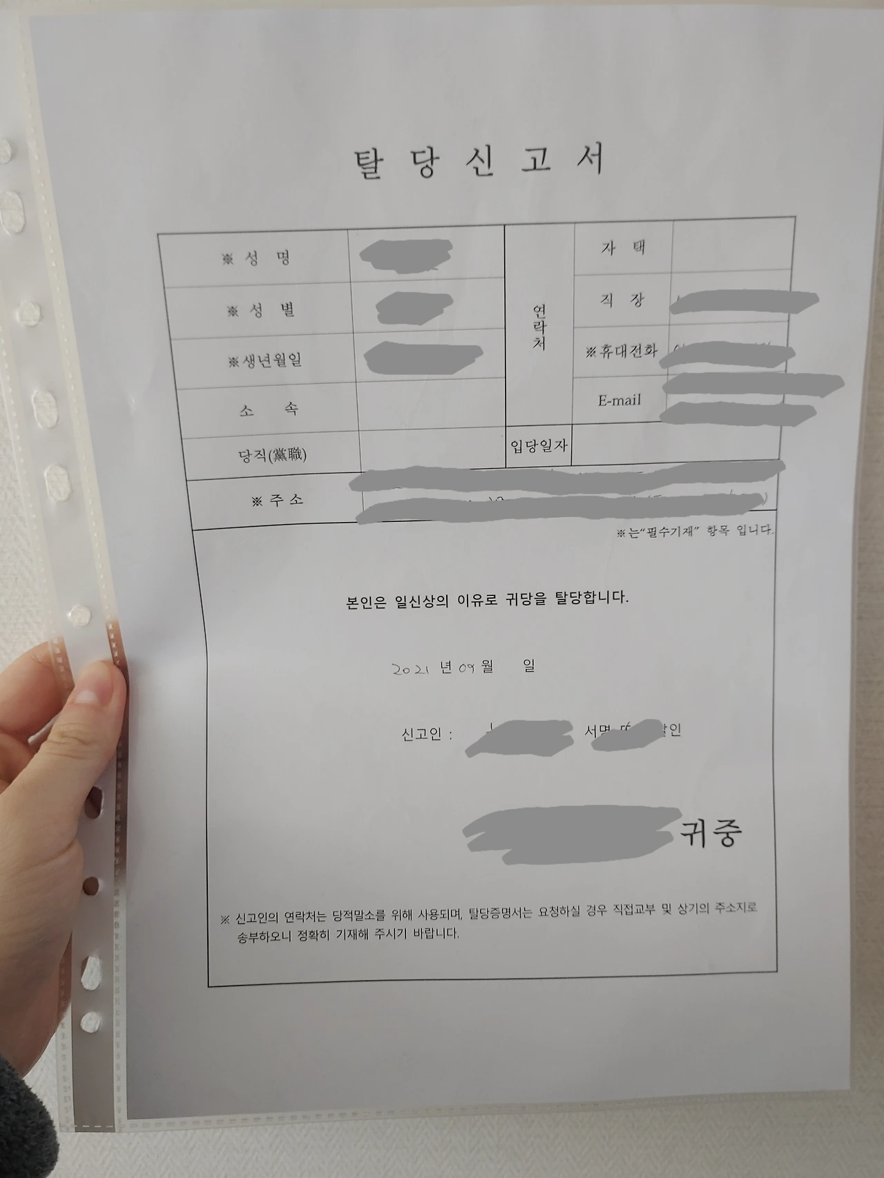 가입할 때는 그렇게 쉽더니 탈퇴 절차는 꽤 복잡하다는 생각이 들었습니다. 사실 이 당은, 제 의지로 가입한 것이 아닙니다.