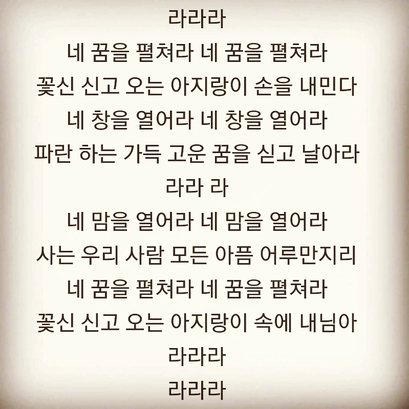 다시 이 노래 '네 꿈을 펼쳐라' 원곡을 찾아보며 심플하면서도 강한 메시지를 한 번 더 되뇌어 보았다.