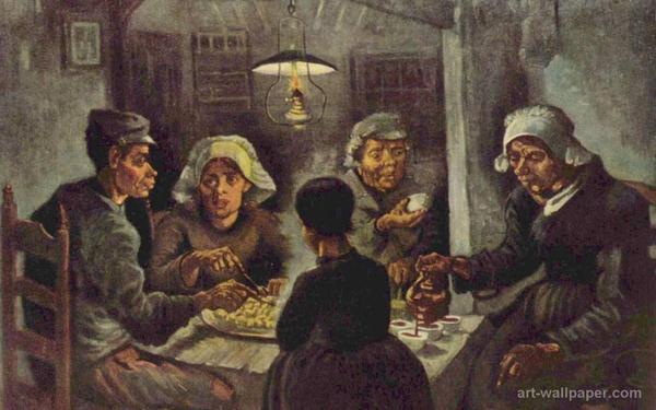 다음 작품은 고호의 초기 작품입니다. 제목은 '감자먹는 사람들(The potato eaters)' 입니다. 프랑스로 가서 인상파 화가들을 접하기 전에 그린 그림이라고 합니다. 위키를 찾아보니 고호는 농부들의 생활을 리얼하게 그리기 위하여 모델들도 일부러 잘생긴 사람들을 고르지 않았다고 합니다. 1885년 작품이라고 하는데 감자와 함께 마시는 음료는 커피가 아닌가 싶습니다.