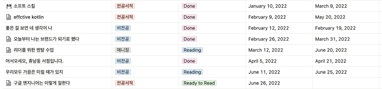 독서 10원 (개발 3권, 매니징 3권, 기타 4권)