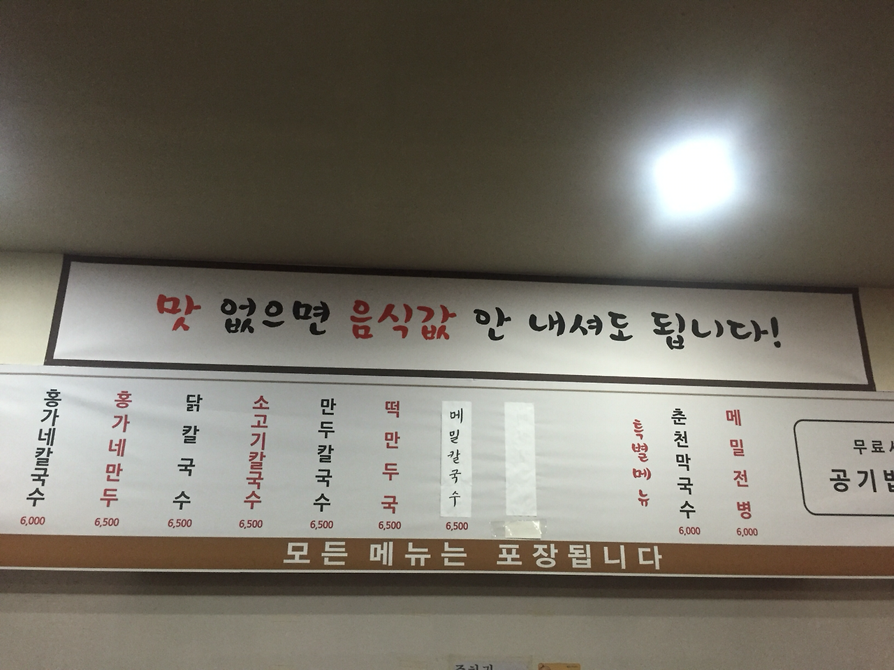 그리고 메뉴판 위에 보이는 문구 '맛없으면 음식값 안 내셔도 됩니다!'