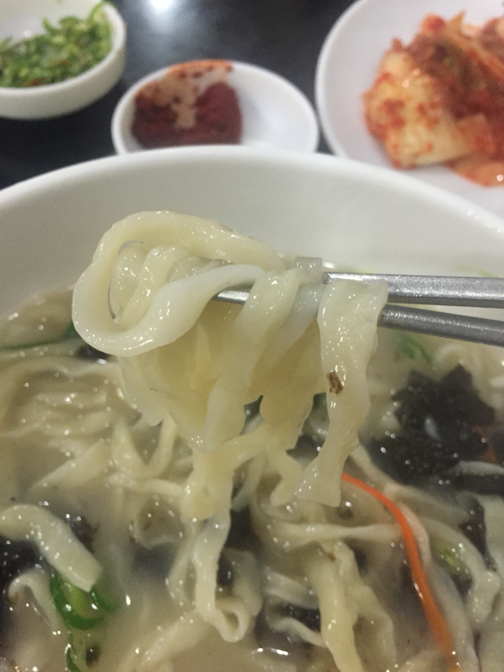 면도 기계로 뽑은 면이 아니라 수타로 뽑은 게 아닐까 추측한다. (기계가 불 규칙적으로 뽑아줬을 수도 있다.)