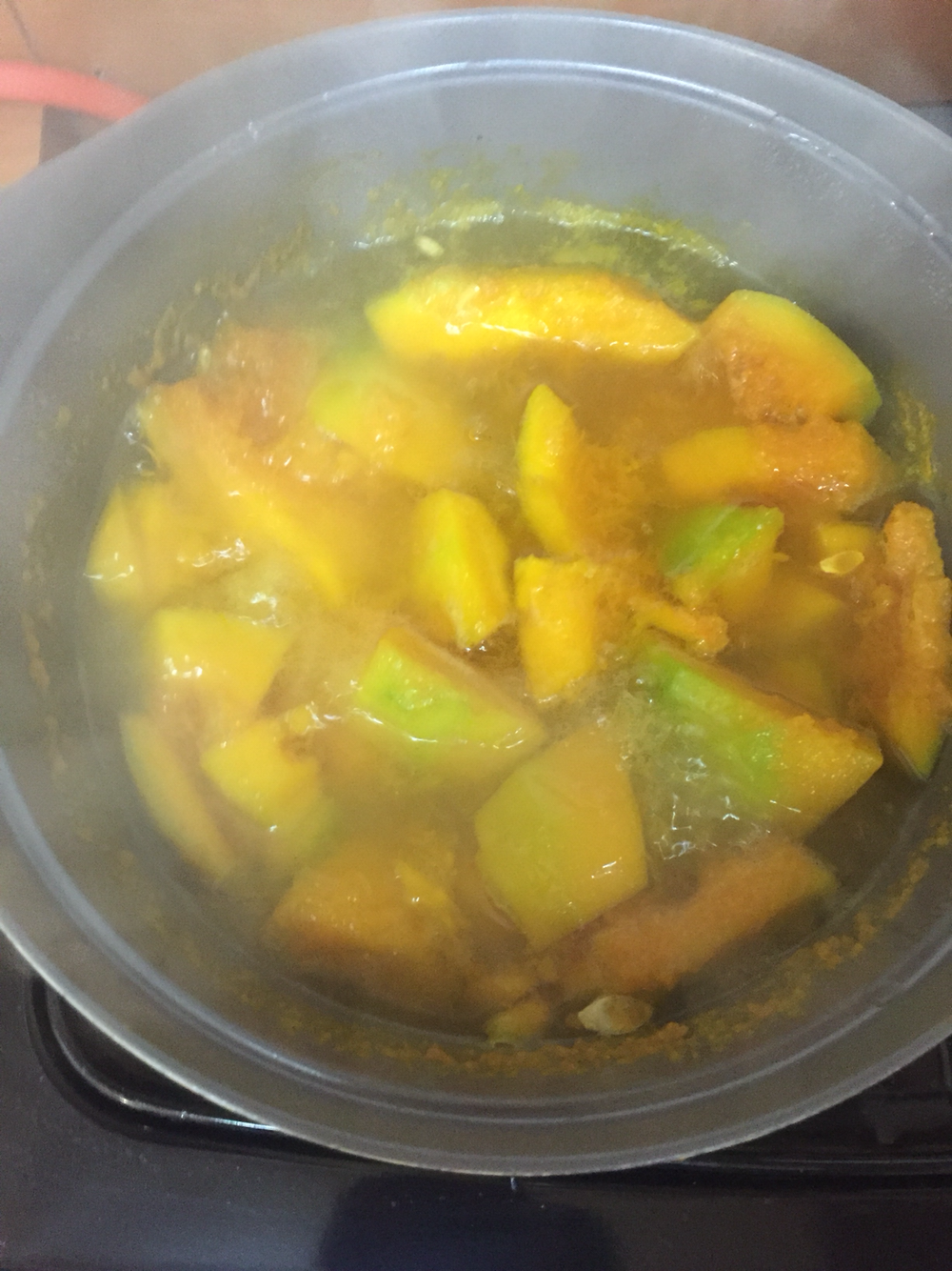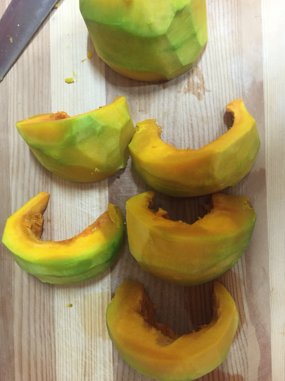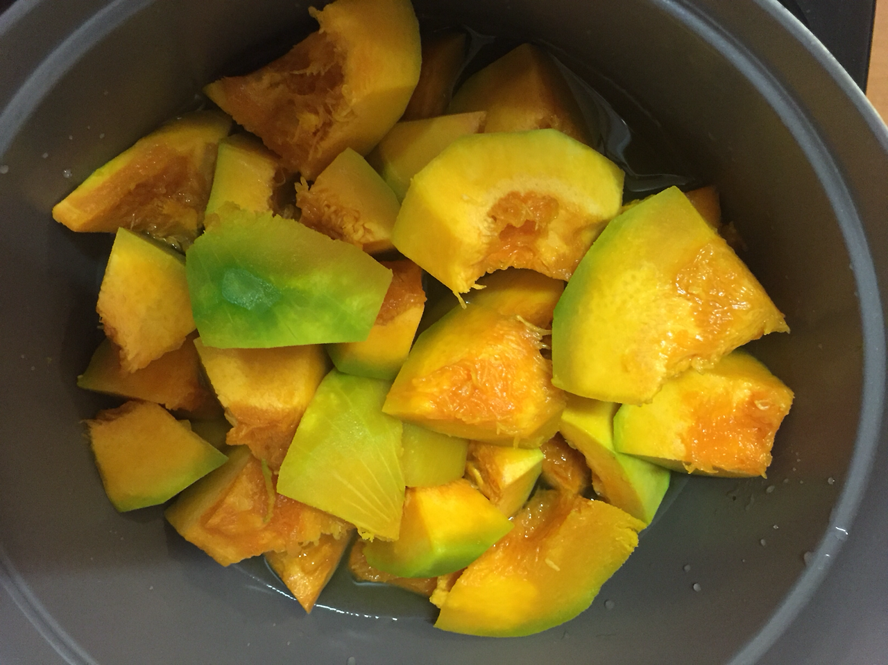 겉 보기에는 똑같지만 말랑해진 단호박입니다.