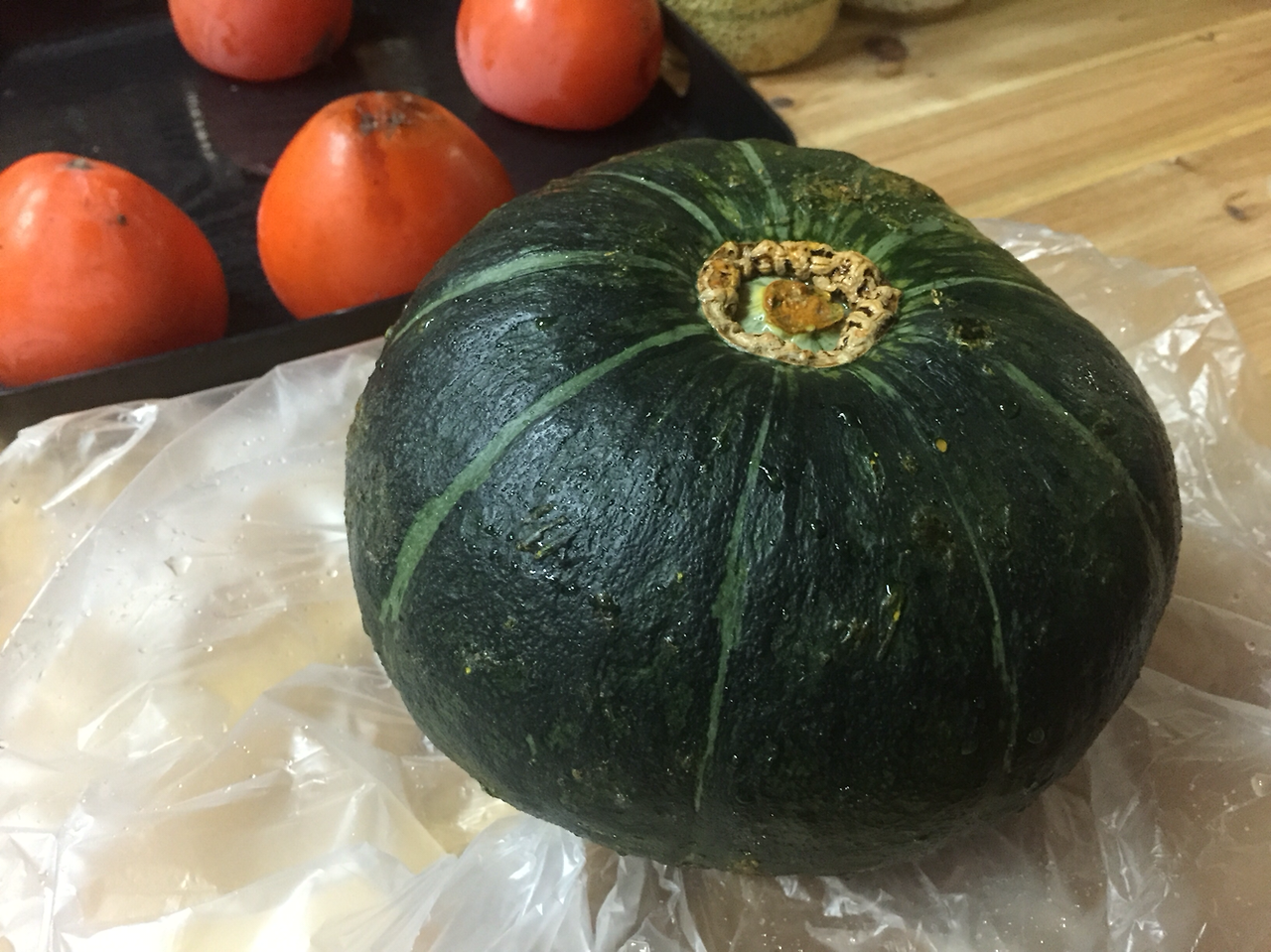 아내의 가르침을 받으며, 단호박을 손질합니다.