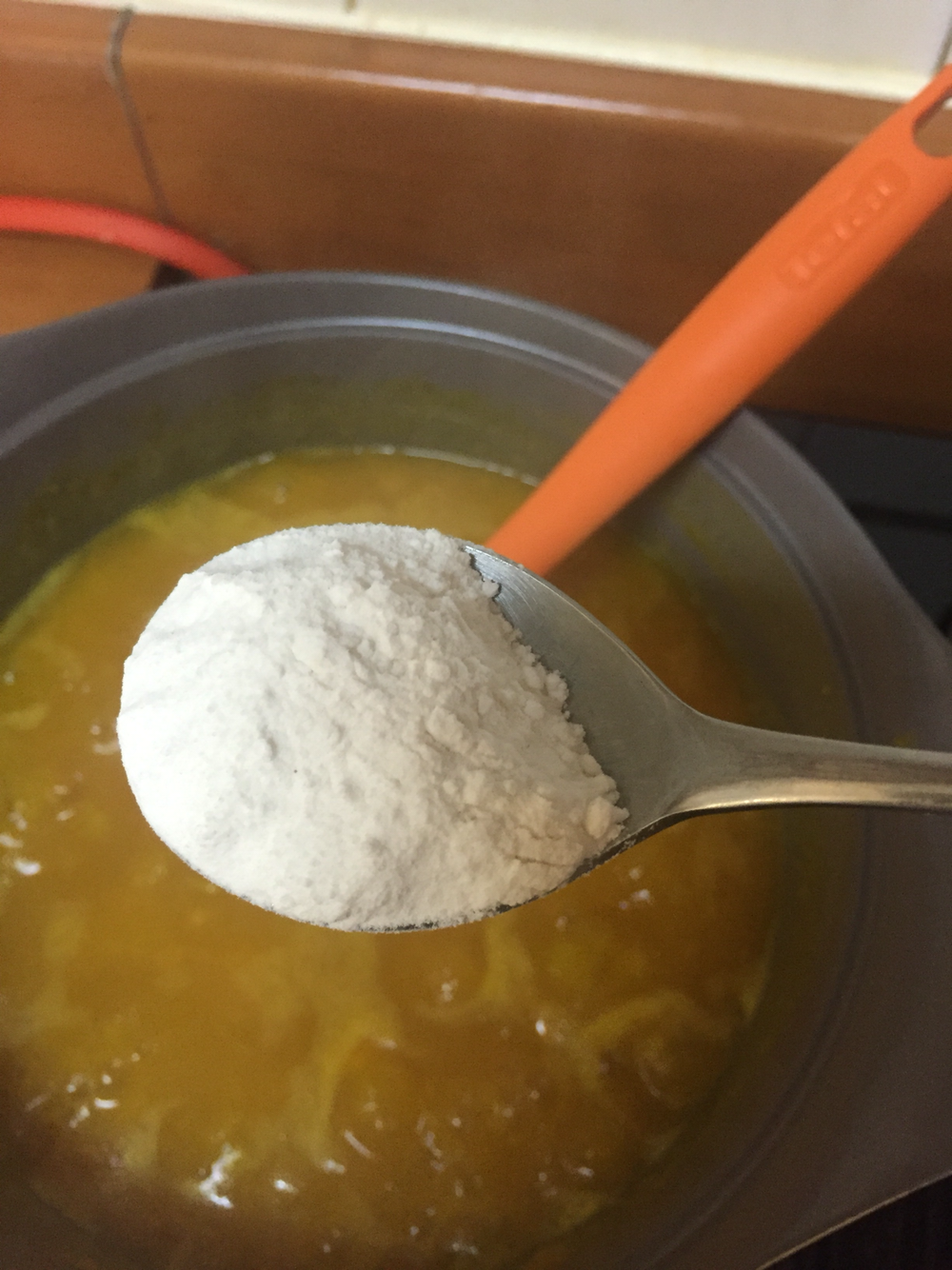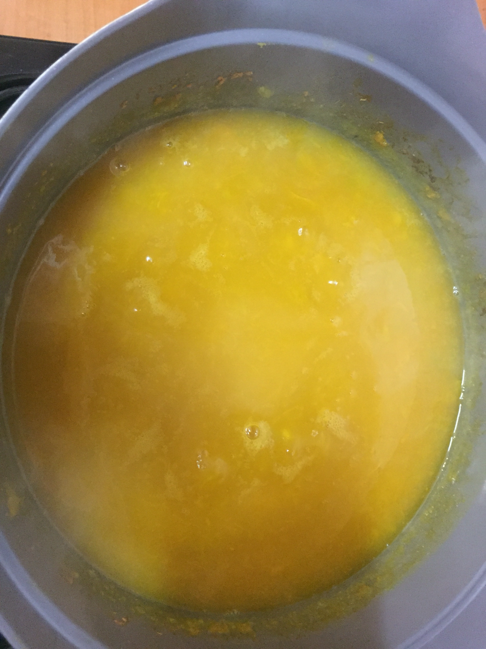 호박을 삶으면서 으깨는 도구(?)를 이용해서 호박을 잘게 부술 수 있어요.