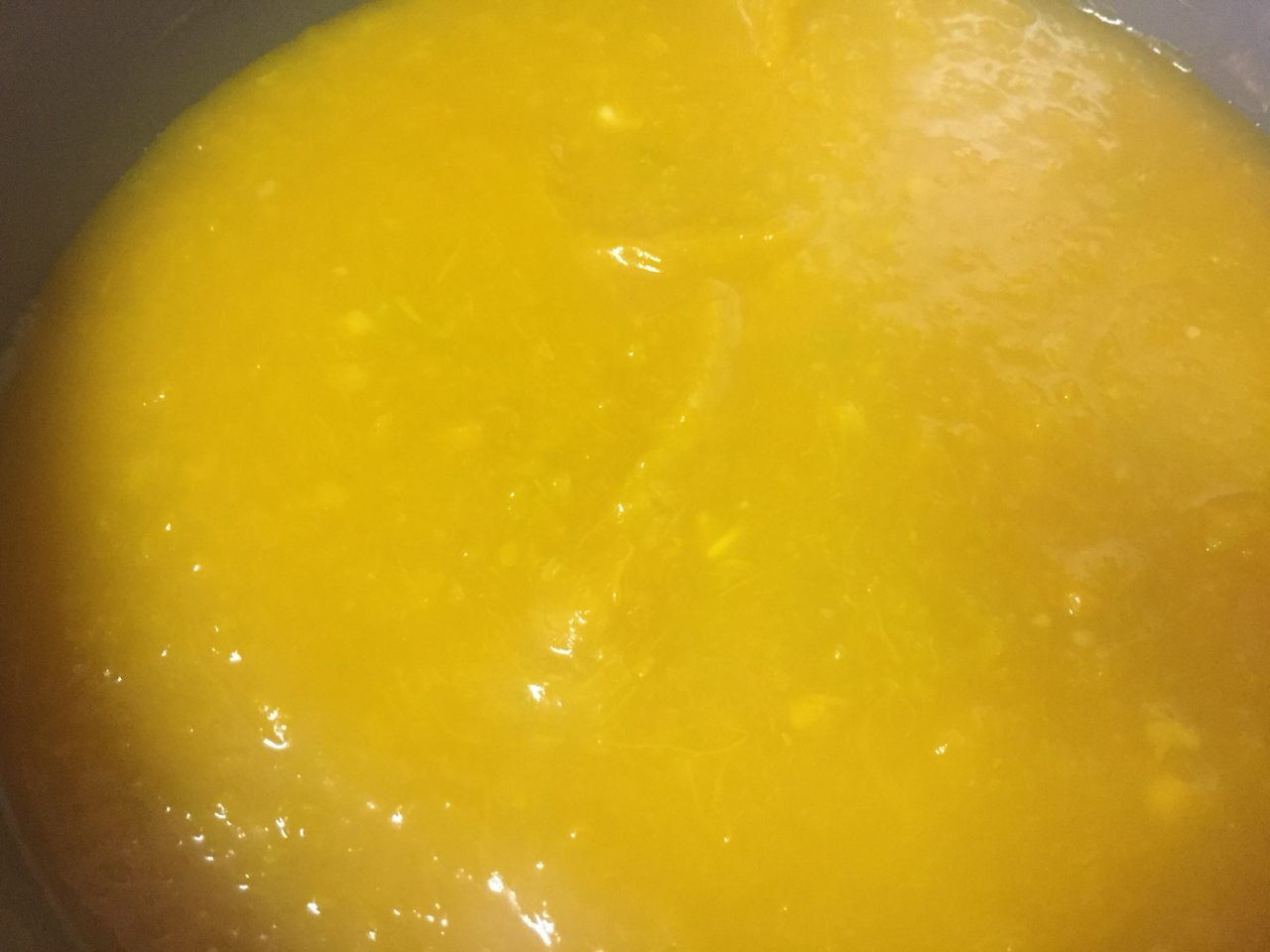 그러면 호박죽이 튀기기 시작하죠.