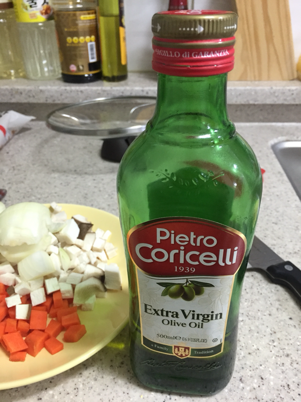 이때 너무 뜨겁게 냄비를 달구면 안된다. 올리브 오일은 타는 점이 낮아서 오일이 탄다고 한다.
