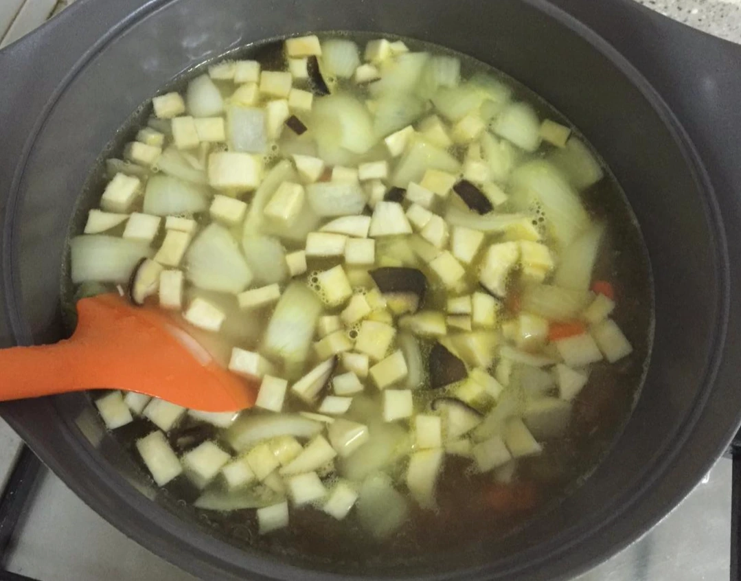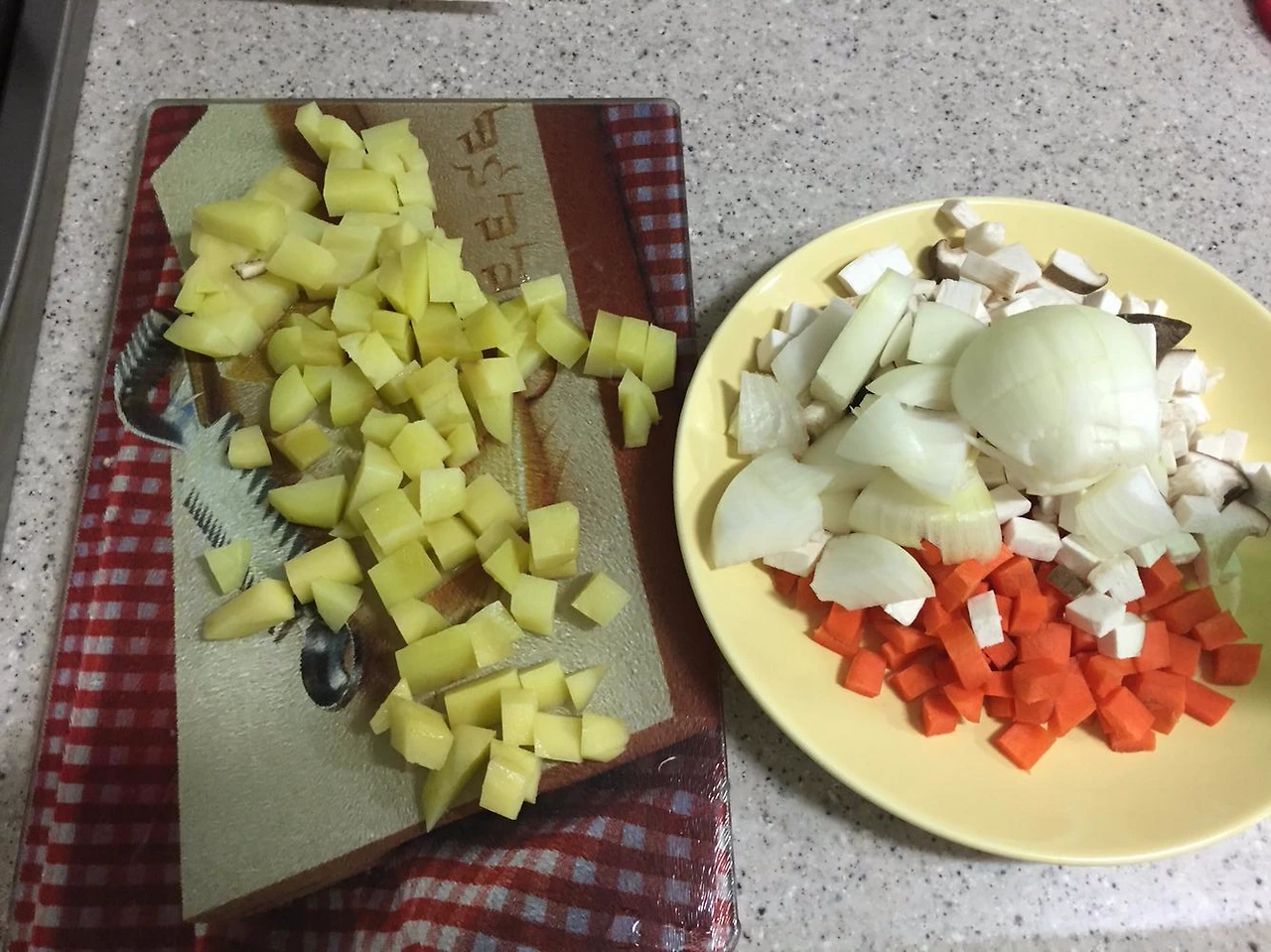 야채를 준비할 때 주의점 하나는 감자나 고구마는 미리 전자레인지에 돌려서 좀 익혀놔야 한다는 것이다.
