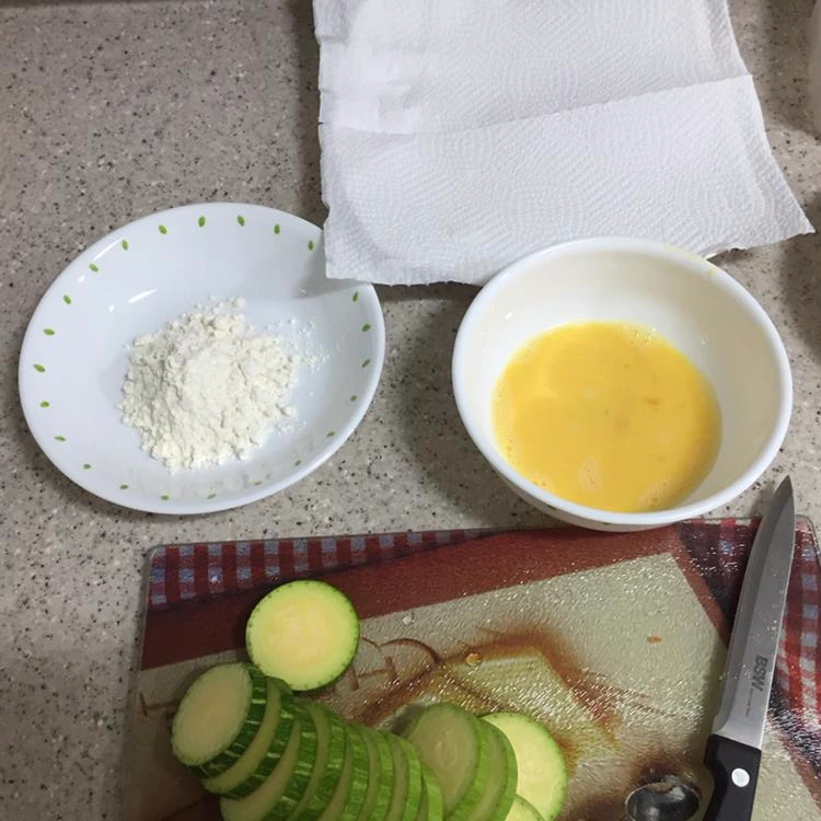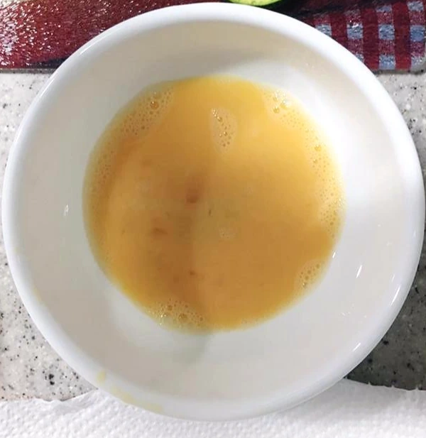 계란 2개 정도를 풀어서 두고 부침가루를 호박을 넣어서 입힐 수 있게 준비한다.