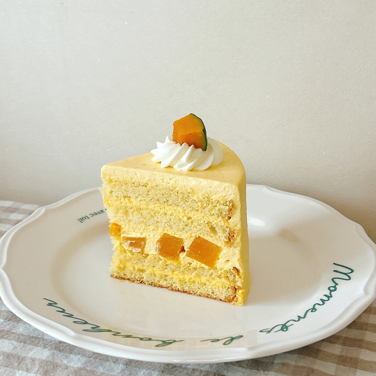 단호박 가루를 넣은 시트는 보송보송하고 시럽을 발라서 촉촉하다. 입에 넣으면 사르르 녹는다. 과하게 달지 않아서 단호박 크림과도 잘 어울린다.