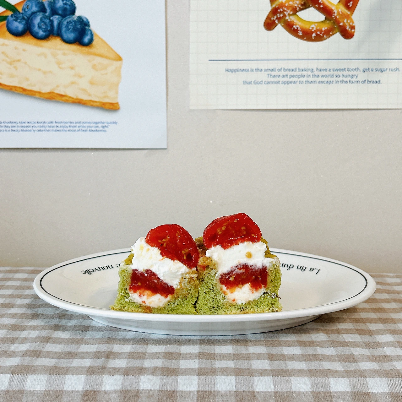레시피는 좀 다르다. 레몬설탕 토마토 절임을 넣은, 바질 토마토 쉬폰 샌드 케이크.