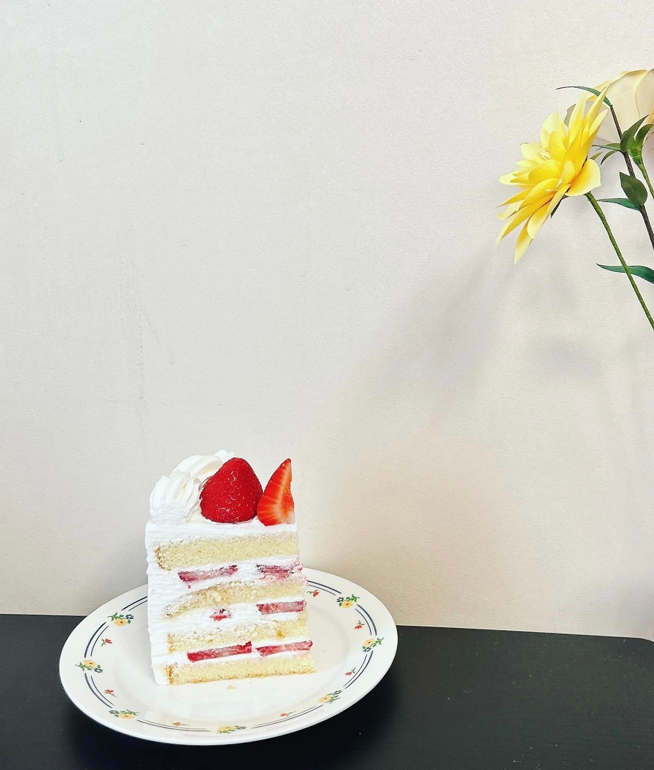 달걀 거품을 올려 제누와즈를 굽고, 생크림을 휘핑해 크림을 바른다. 새로 산 모양깍지로 데코를 한 뒤, 딸기를 몇 개 올리면 완성.