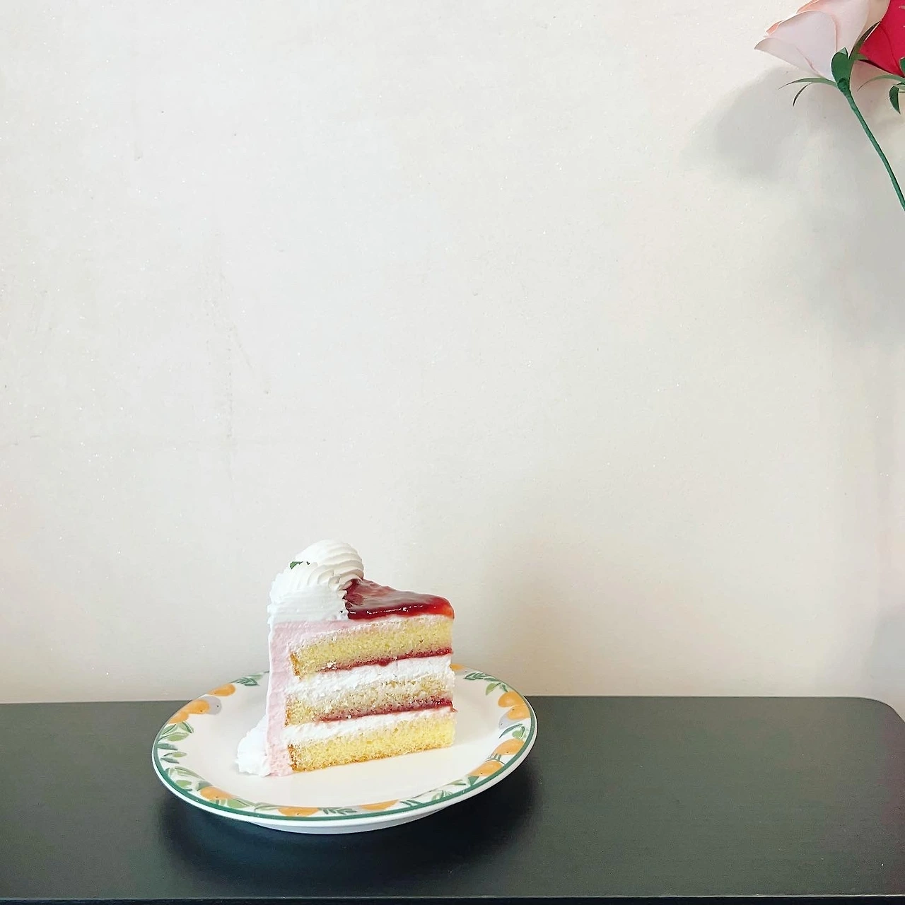 단면을 자르기 전에 케이크 디자인이 조금 아쉽다는 생각이 들었는데, 한 조각 자르고 나니 그 마음이 사라졌다. 이 케이크는 단면이 정말 사랑스럽다!