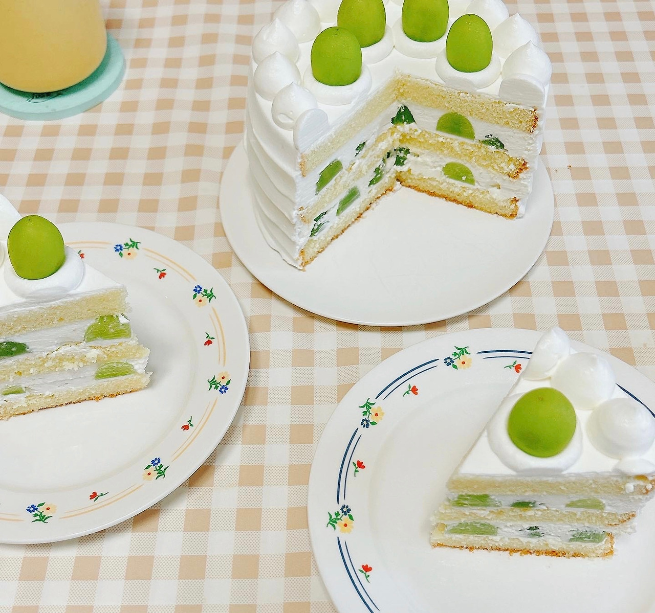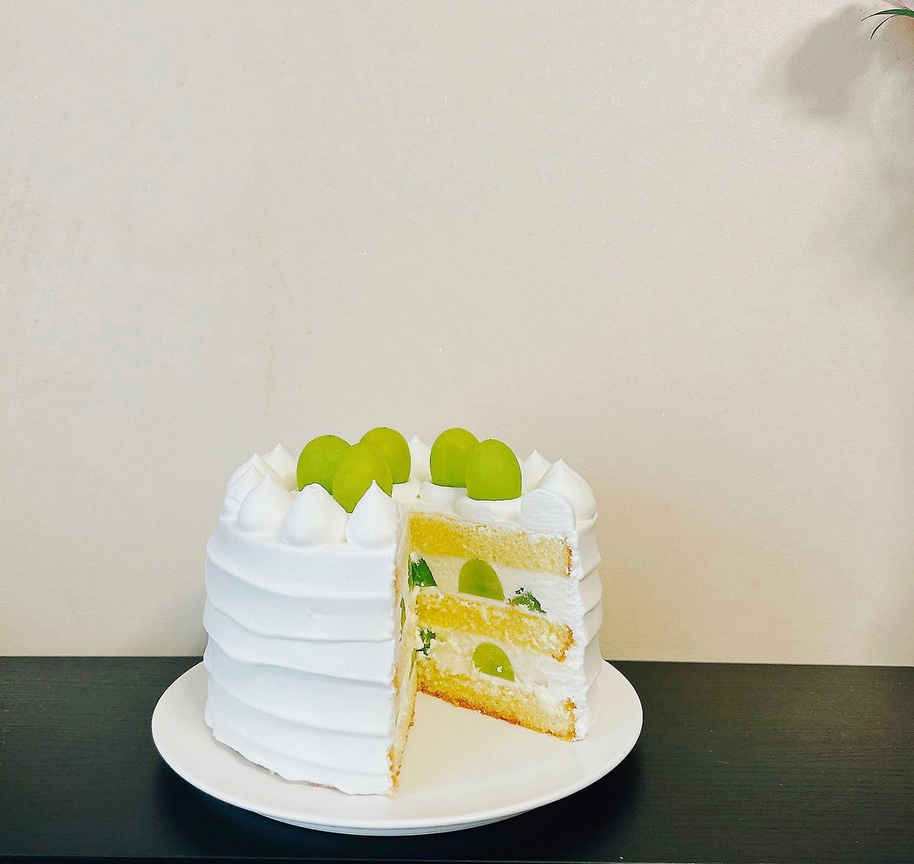청포도와 요거트 크림으로 만든 새콤달콤한 케이크.