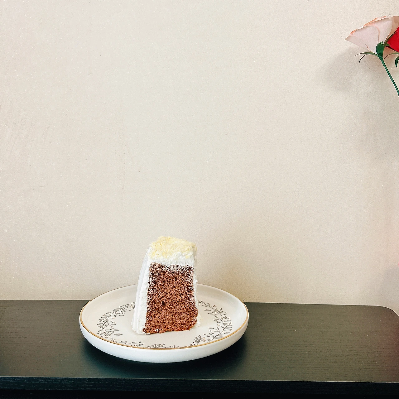 포크로 조금 잘라서 입에 넣으면, 구름처럼 사르르 흩어지는 케이크 시트와 달콤한 화이트 초콜릿 크림이 조화롭게 어우러진다. 게다가 쉬폰 시트에는 버터가 들어가지 않아 부담 없다.