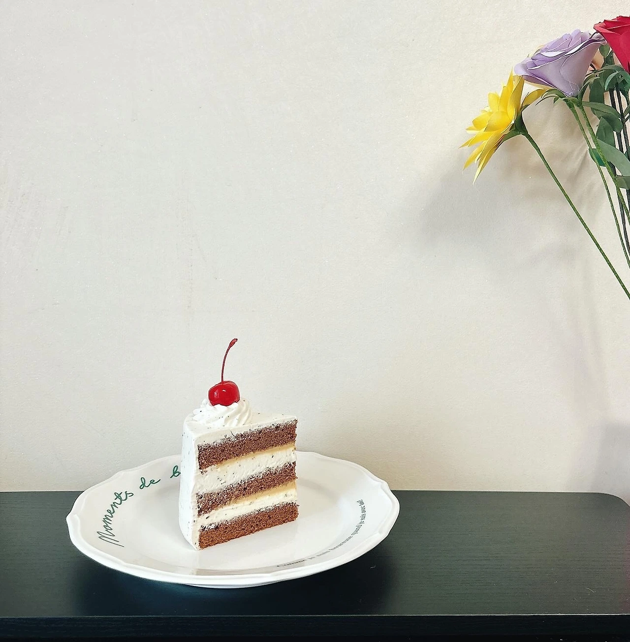 케이크 위에 얹은 통조림 체리도 예쁘다. 빨갛고 통통하고 깜찍한 체리 덕분에 케이크가 더 귀여워 보인다.