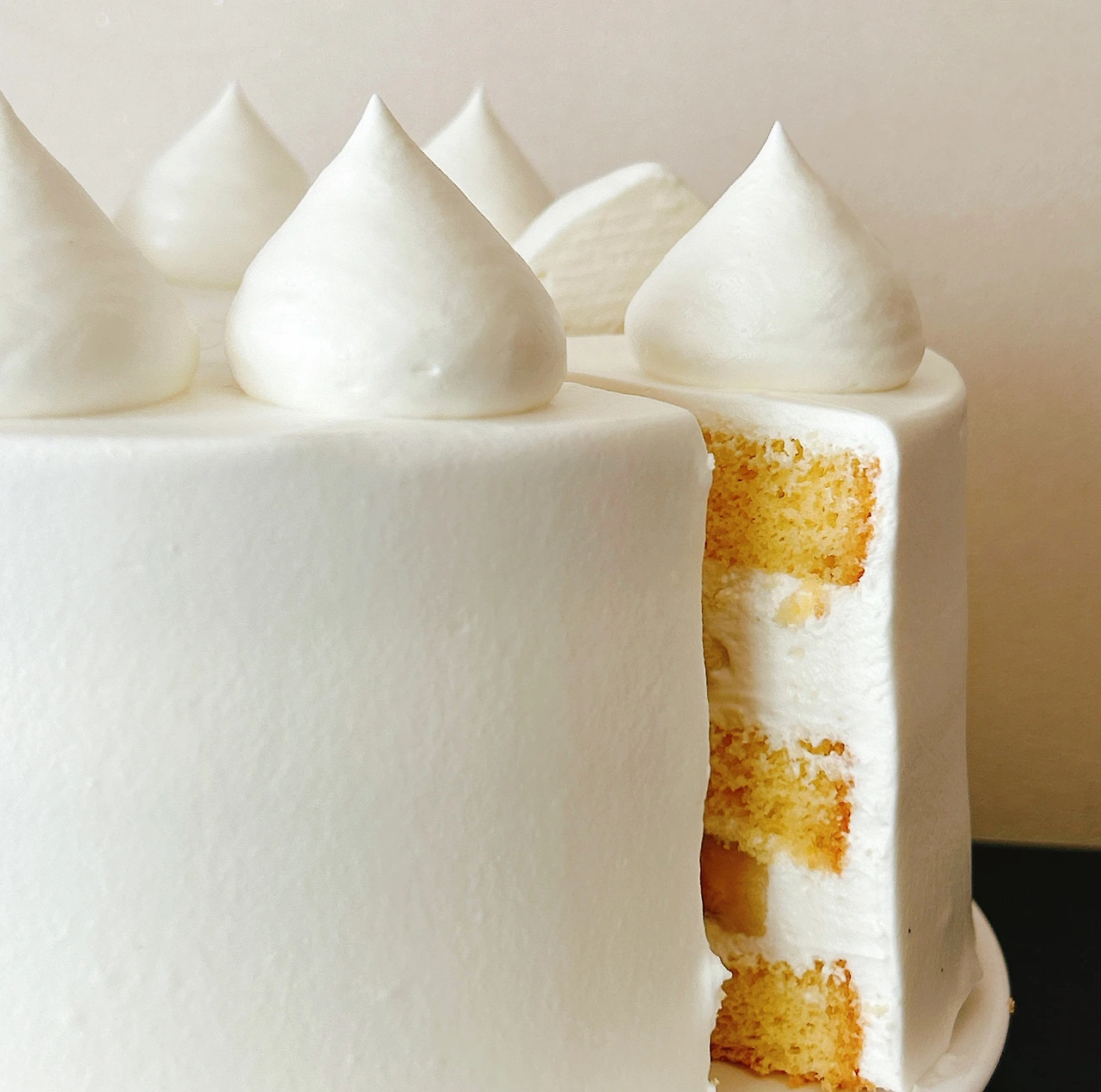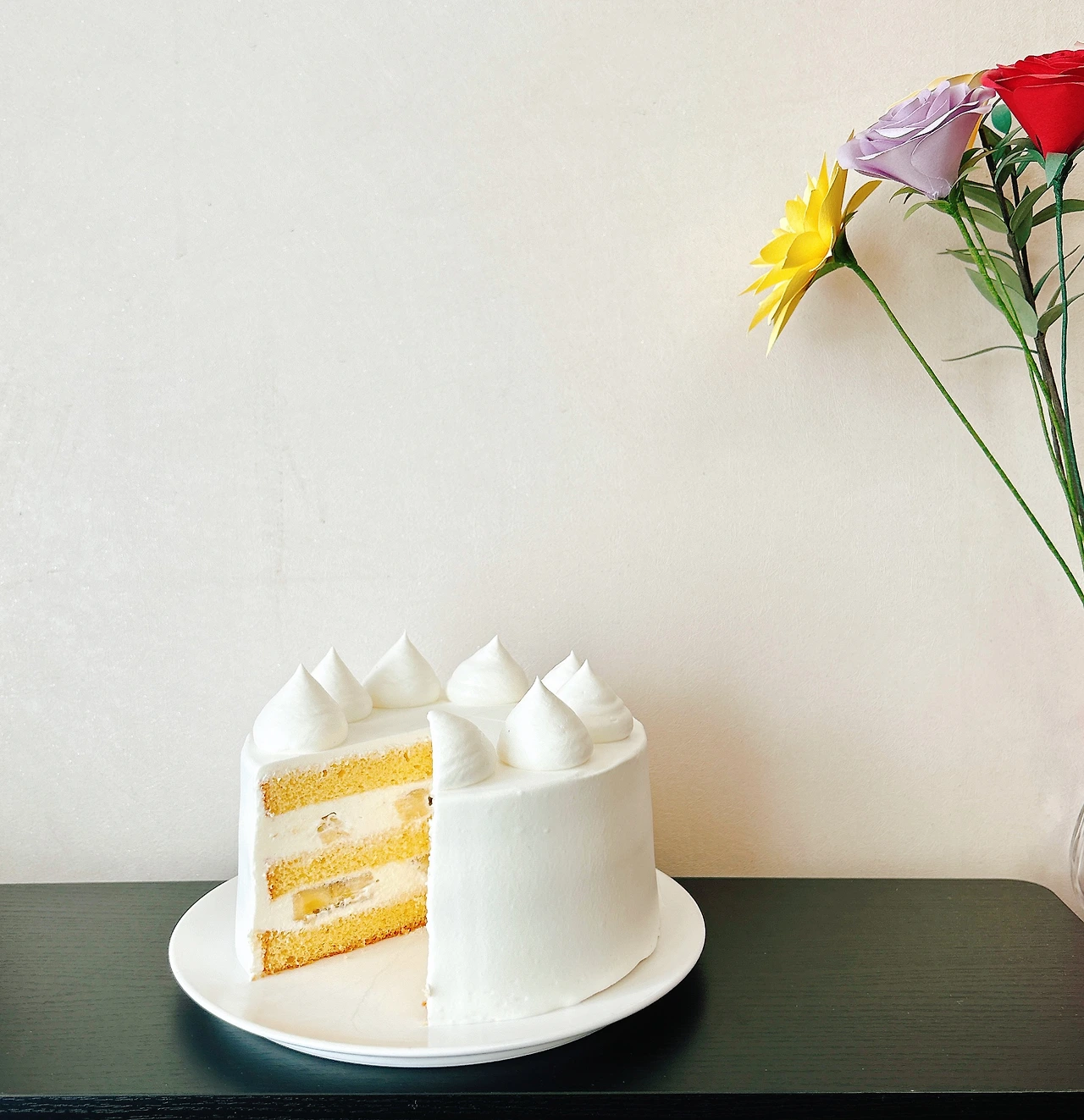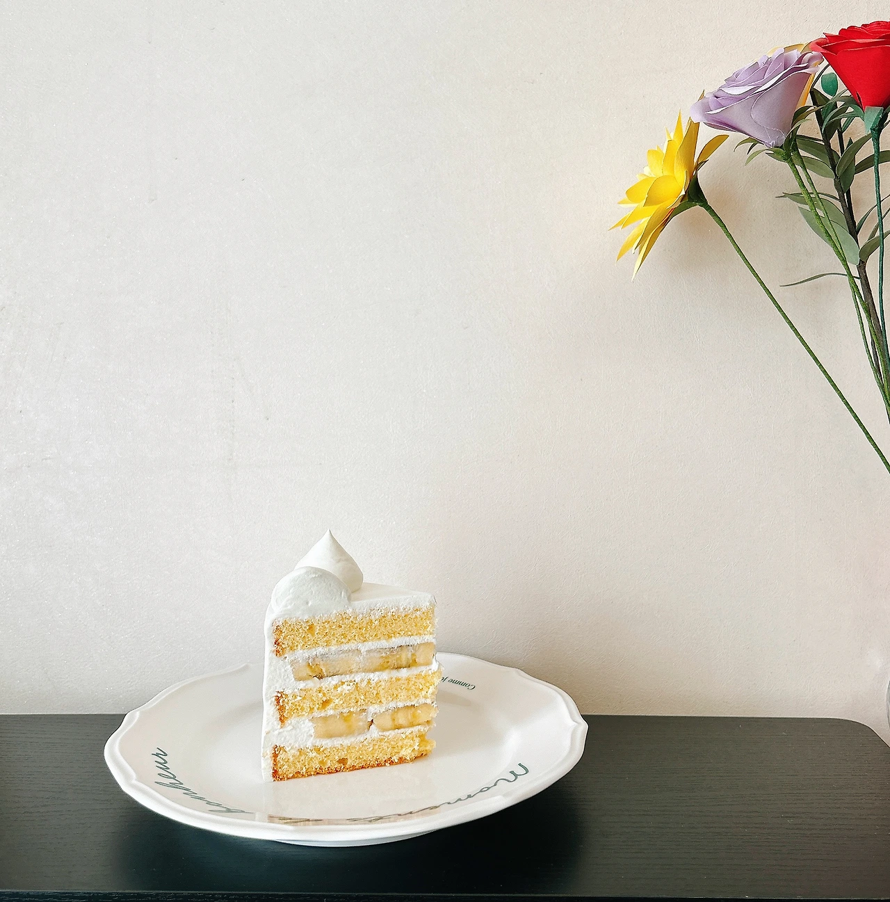 폭신한 바닐라 제누와즈에 부드럽게 녹는 화이트 초콜릿 크림을 바르고 달콤한 바나나를 샌드한 케이크. 향긋한 바나나와 초콜릿이 어우러지는, 무척이나 포근한 케이크가 되었다.