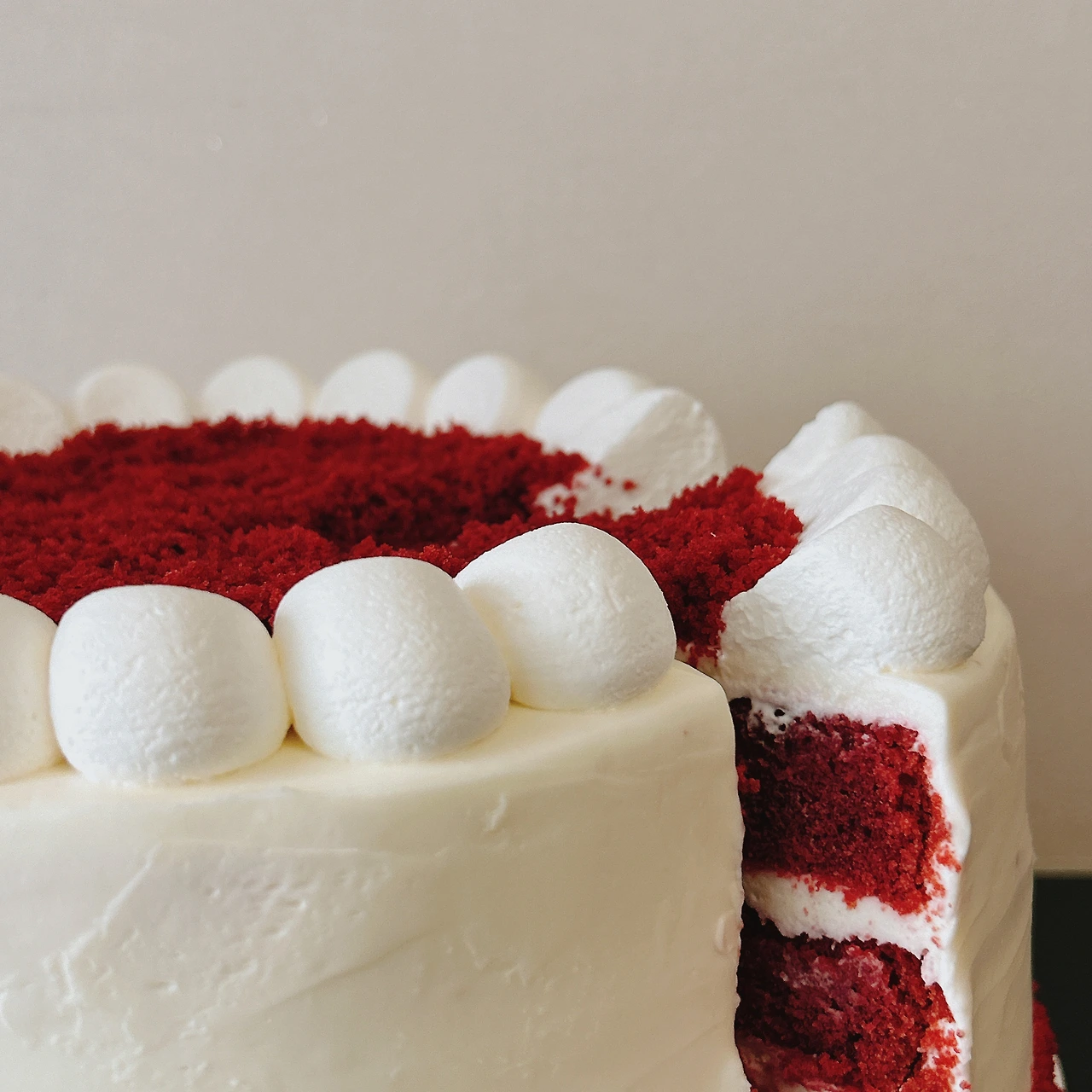 한없이 부드럽고 촉촉한 파운드 시트에, 새콤달콤한 크림치즈 크림을 바른 레드벨벳 케이크.