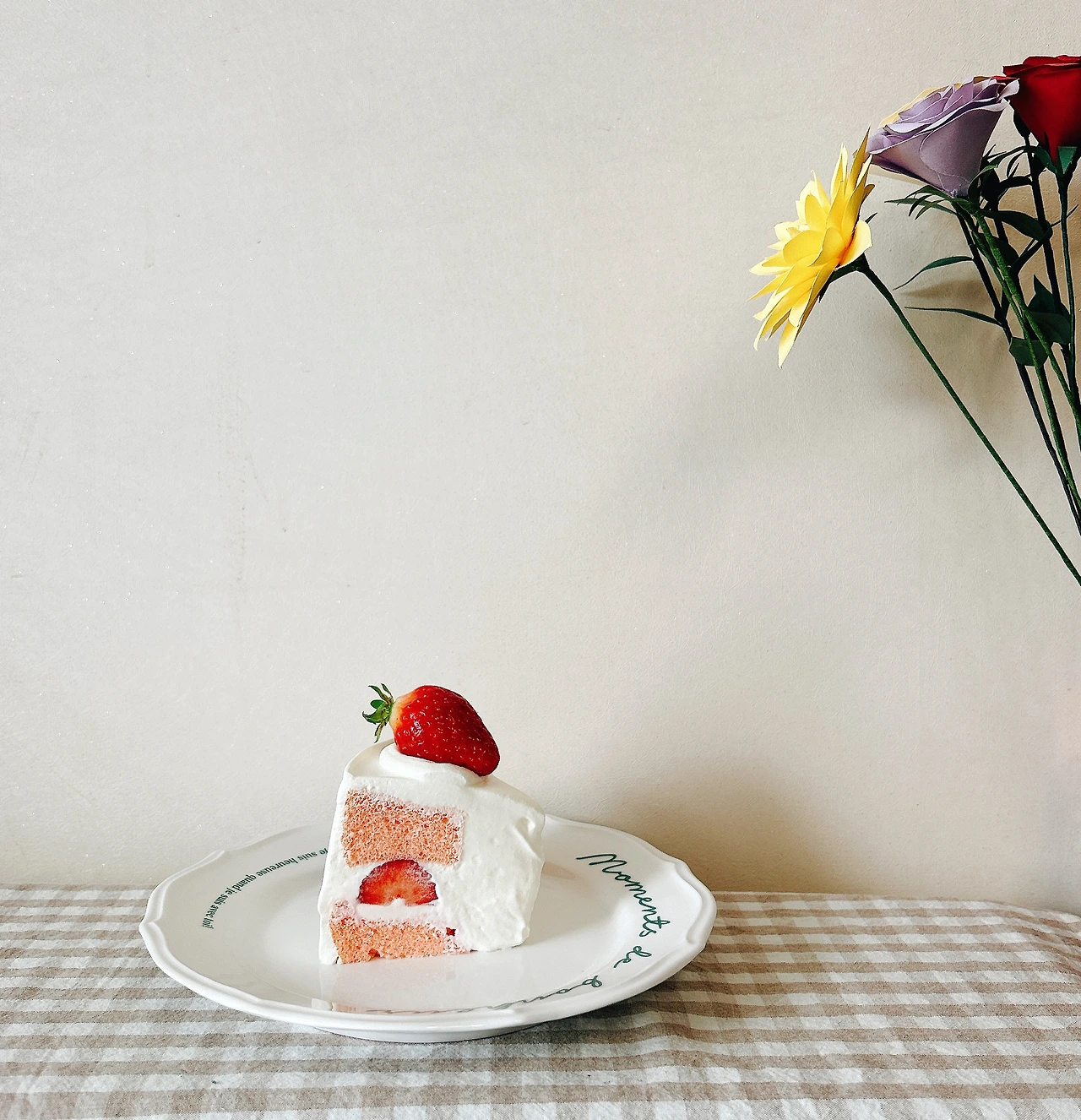 딸기를 포크로 조심히 들어서 앞쪽의 풍성한 생크림에 콕 찍어 먹으면 세상 행복하다. 우울한 날도 있겠지만 파릇파릇한 봄날과 귀여운 케이크처럼 행복한 날이 더 많았으면 좋겠다.