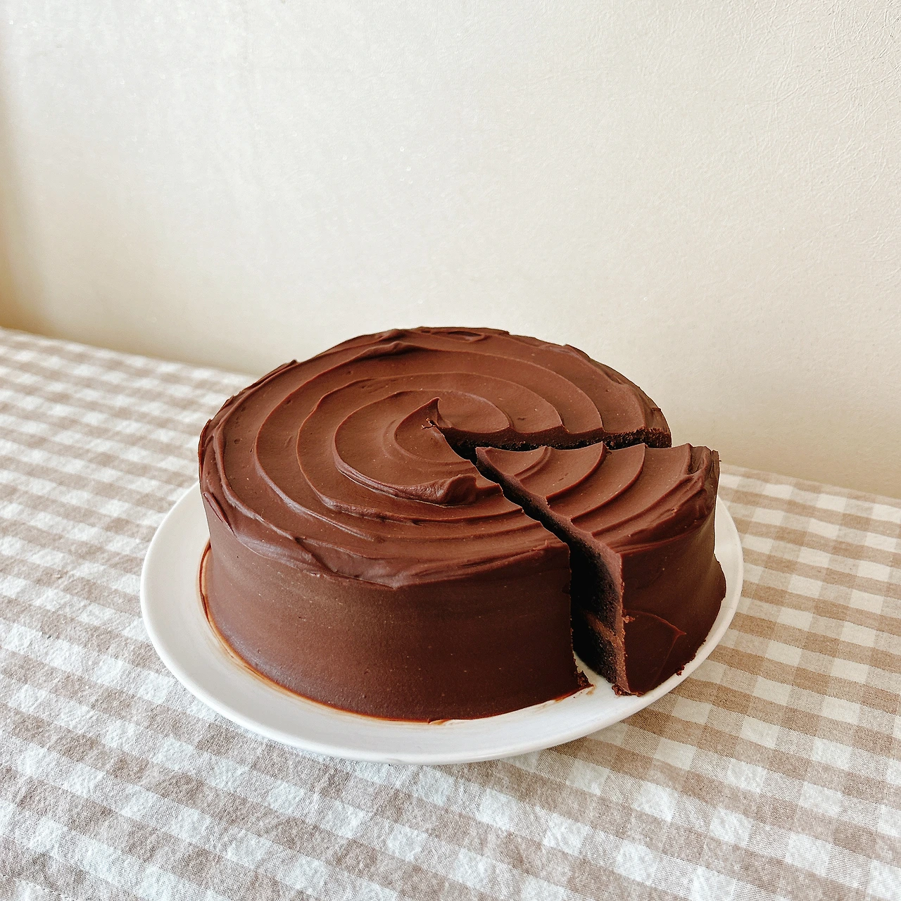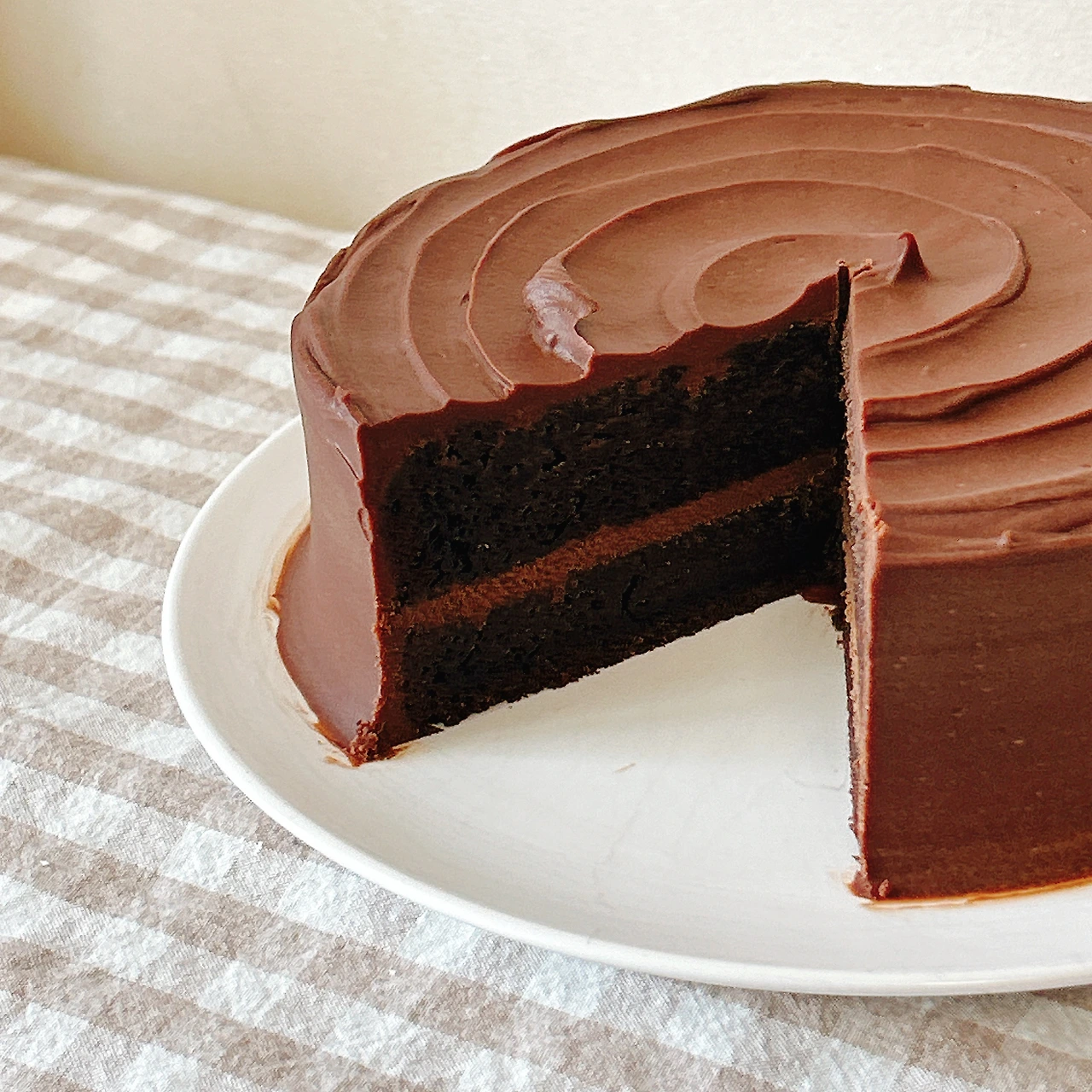 촉촉하고 진한 초콜릿 시트에 꾸덕꾸덕하고 달콤한 가나슈를 듬뿍 바른, 데블스 푸드 케이크.