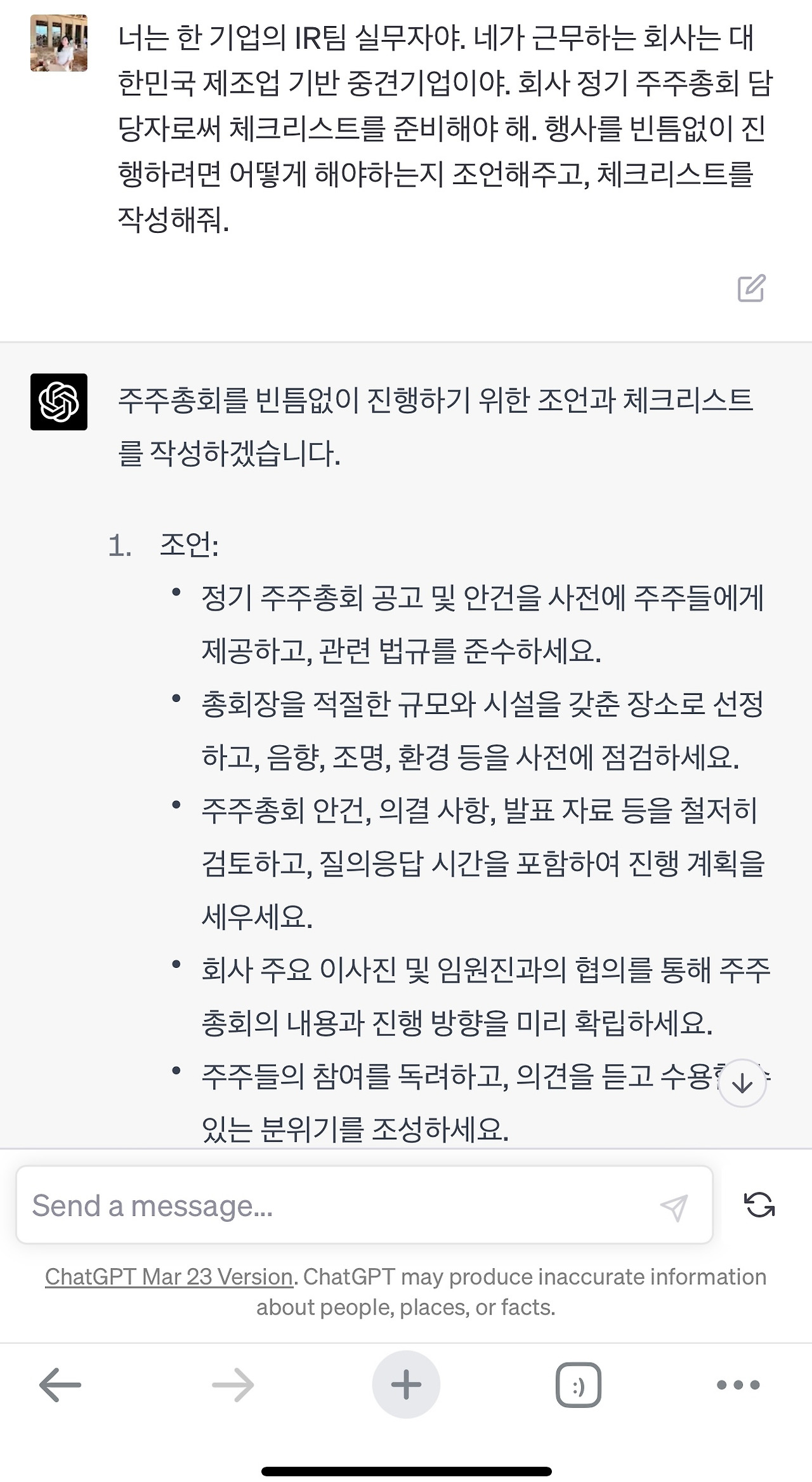 주주총회를 빈틈없이 진행하기 위한 조언과 체크리스트를 작성하겠습니다.