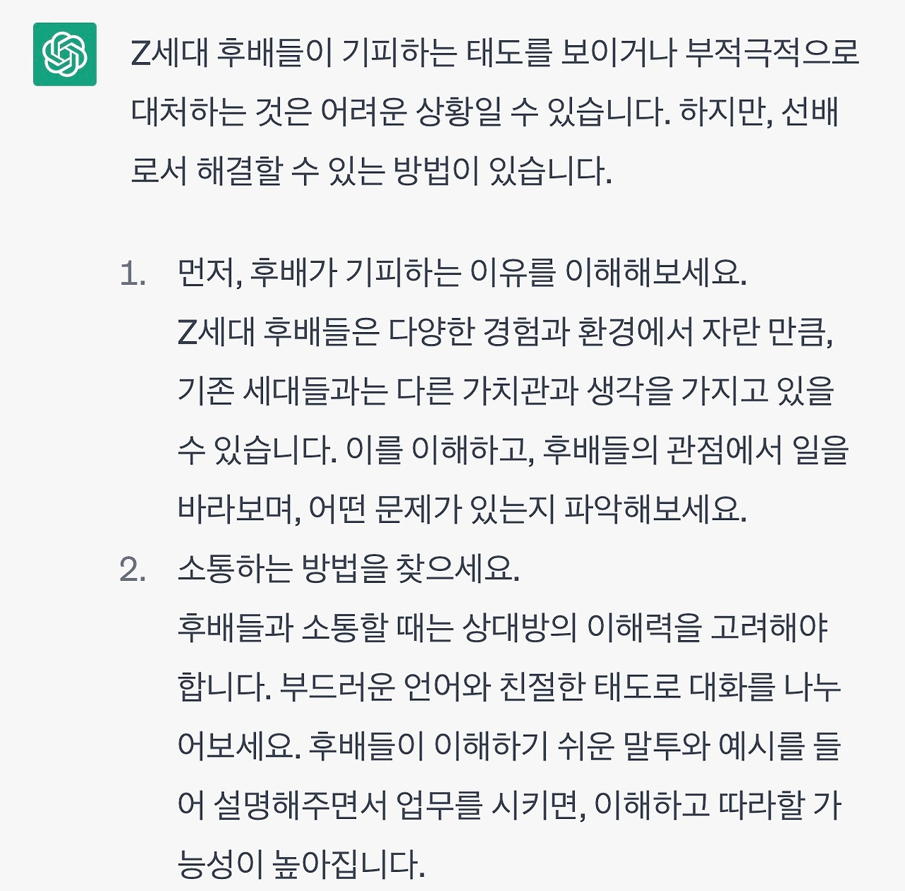 Z세대 후배들이 기피하는 태도를 보이거나 부적극적으로 대처하는 것은 어려운 상황일 수 있습니다. 하지만, 선배로서 해결할 수 있는 방법이 있습니다.