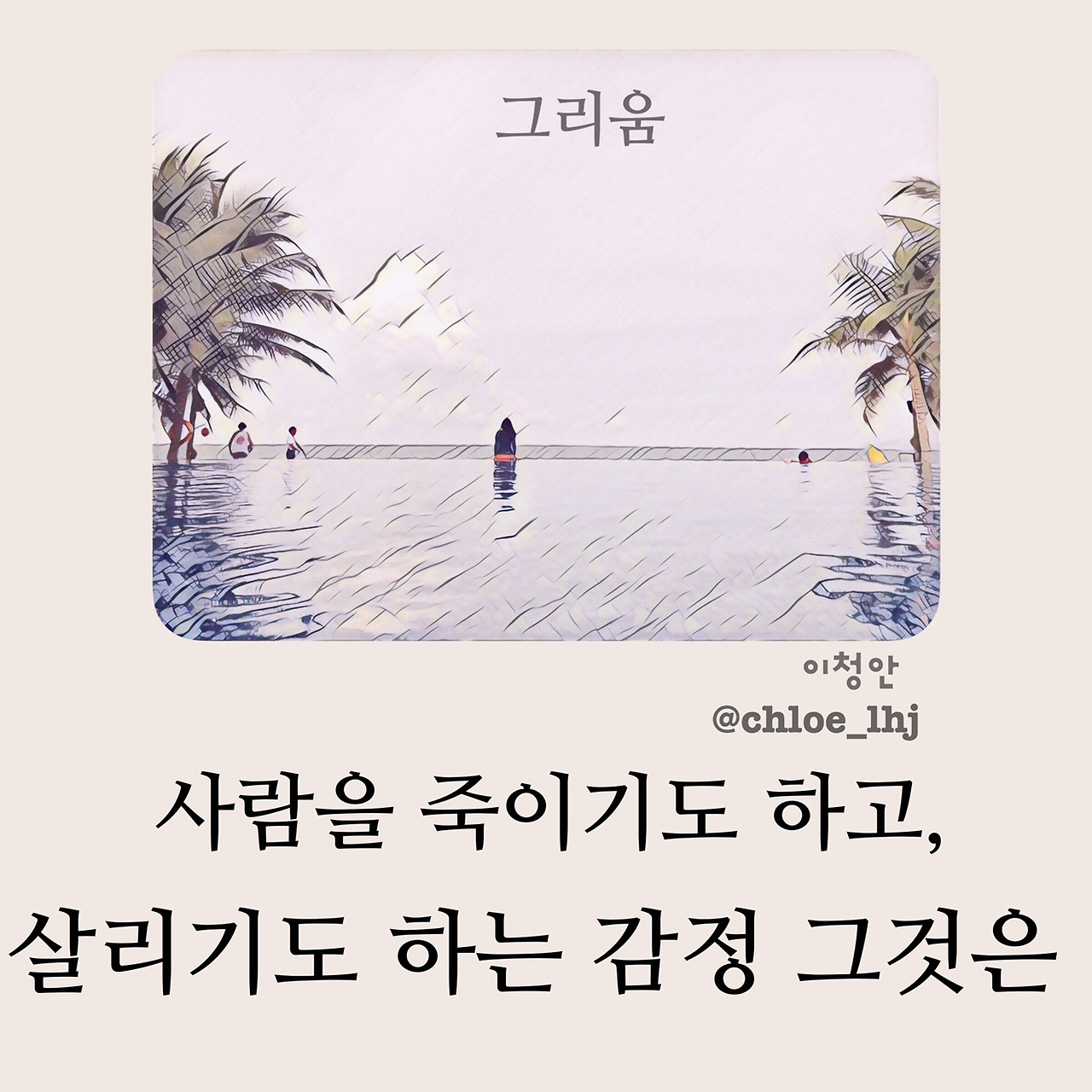 사람의 마음 중에서 그리움이라는 감정이 가장 간절한 마음이 아닐까 생각했다. 그리움. 사전적으로 굳이 정의하자면, '누군가 혹은 어떤 대상을 그리는 마음'이다. '그리움'이란, 눈앞에 그려질 정도로 생각나고 또 생각나서 그리움일까.