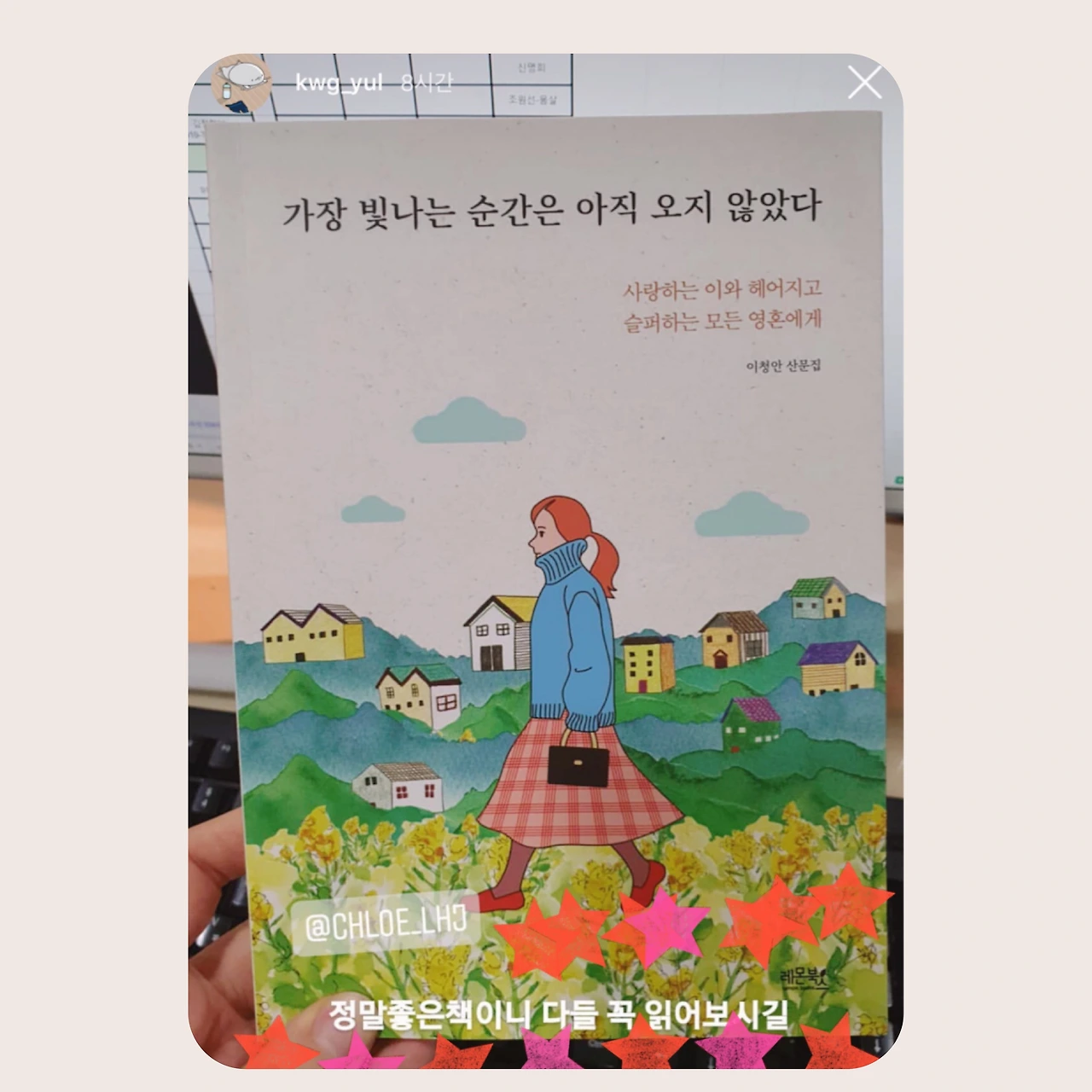 이청안 산문집 "가장 빛나는 순간은 아직 오지 않았다"와 관련된 이야기