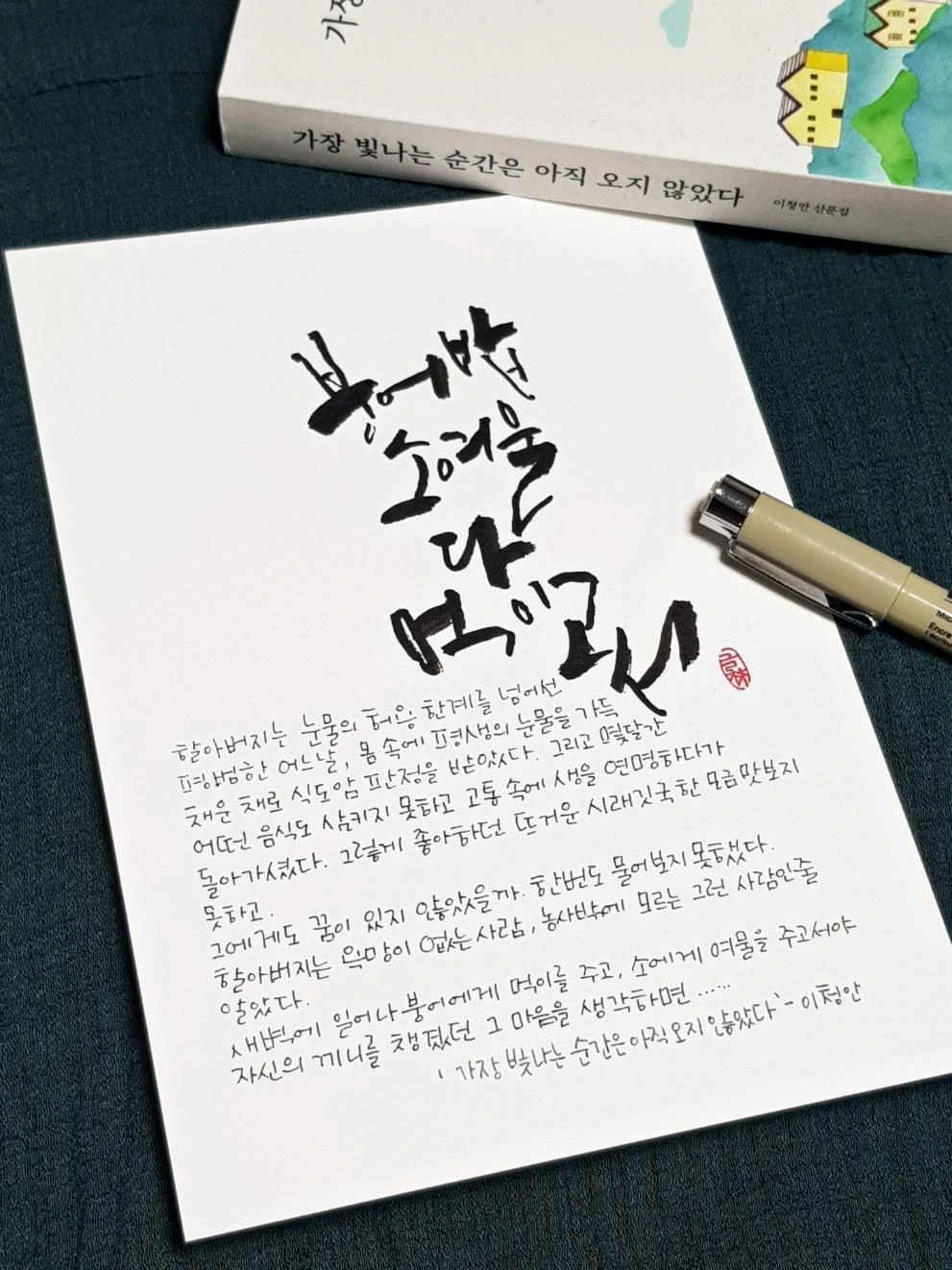 이청안 산문집 “가장 빛나는 순간은 아직 오지 않았다” 캘리그래피