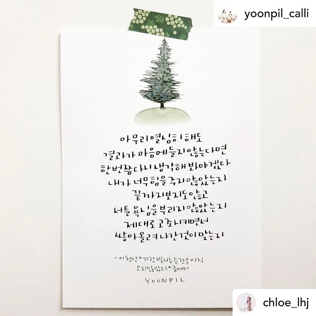 원본 사진은 저의 인스타그램 계정에서 (아래 링크) 살펴보실 수 있습니다! ^^ 저 또한 작품들을 리그램 한 것이니 태그 된 계정으로 들어가시면, ‘글씨 장인’분들의 다양한 작품들을 감상하실 수 있습니다.