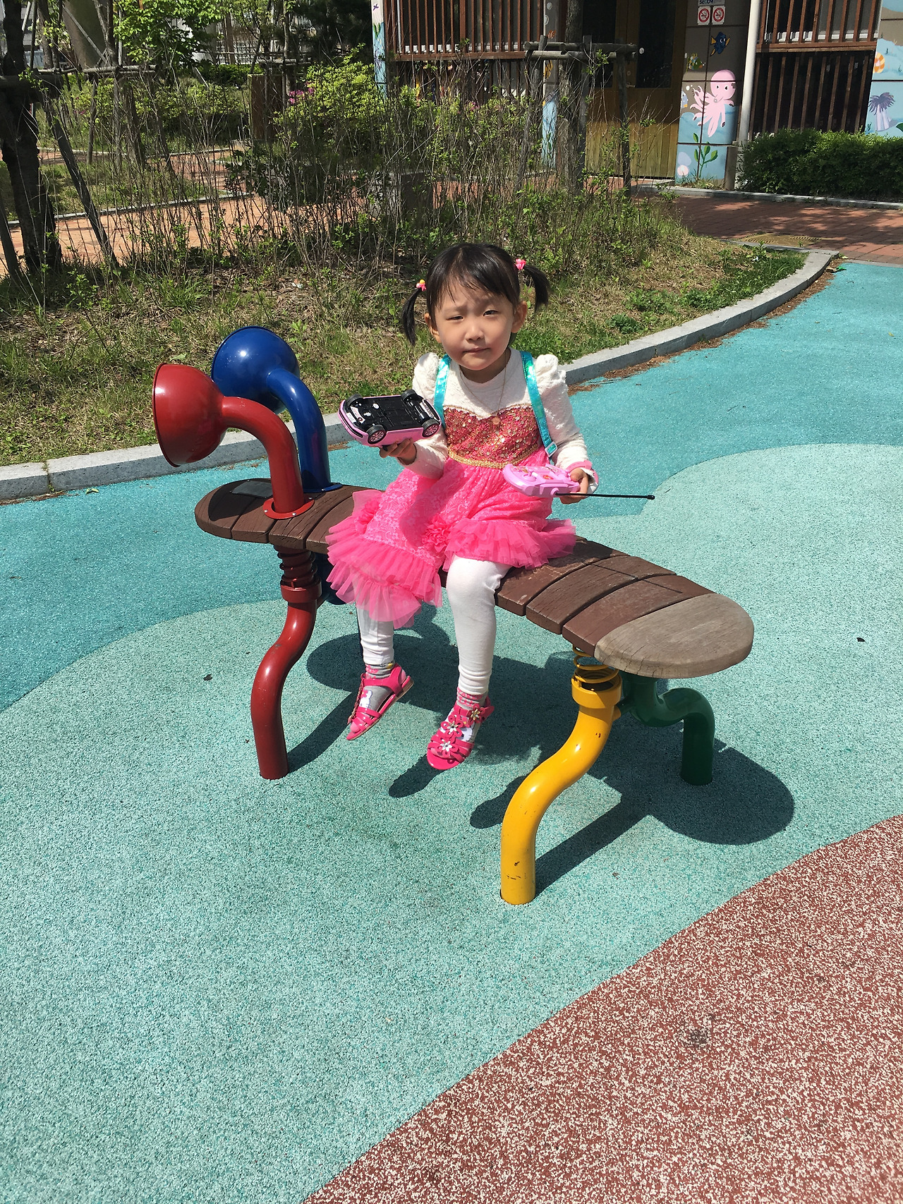 어린이날 어린이집 앞에서 가지고 노는 사진인데 몇 번 만져 보더니 전후진 잘하더군요. 아직 방향 전환에 대한 부분은 적응하고 있는 것 같습니다.