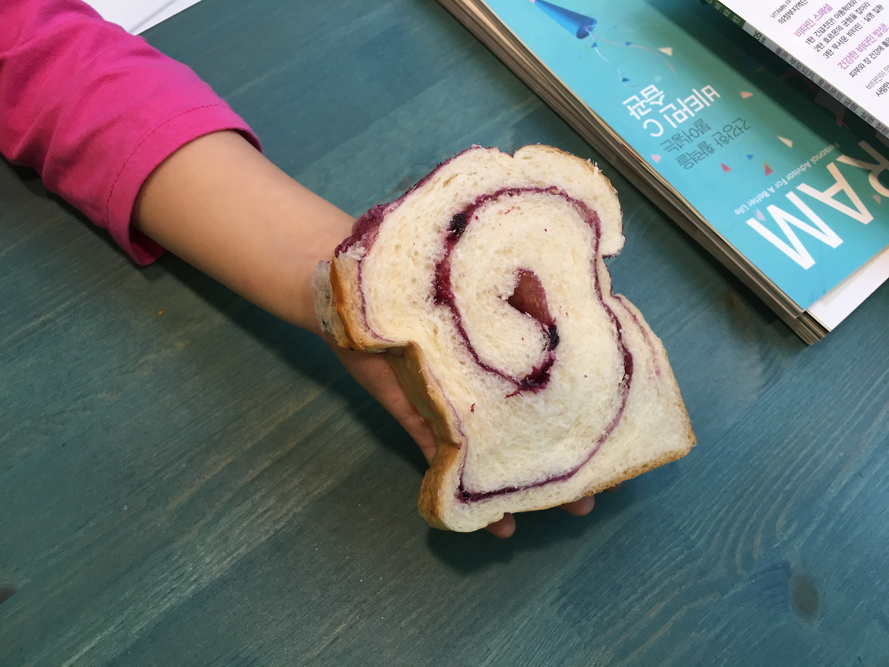다혜가 이집 빵에 폭 빠졌습니다. 저걸 다 먹는데 먹을 때 목마르다는 소리 안 하더군요. 그 정도로 찰지다는 이야기이고 쨈이 푸짐해서 맨입에 먹어도 목이 메지 않습니다.