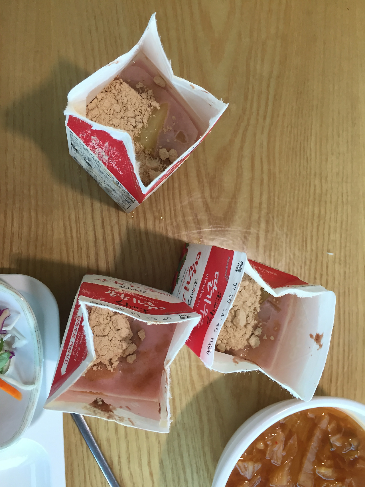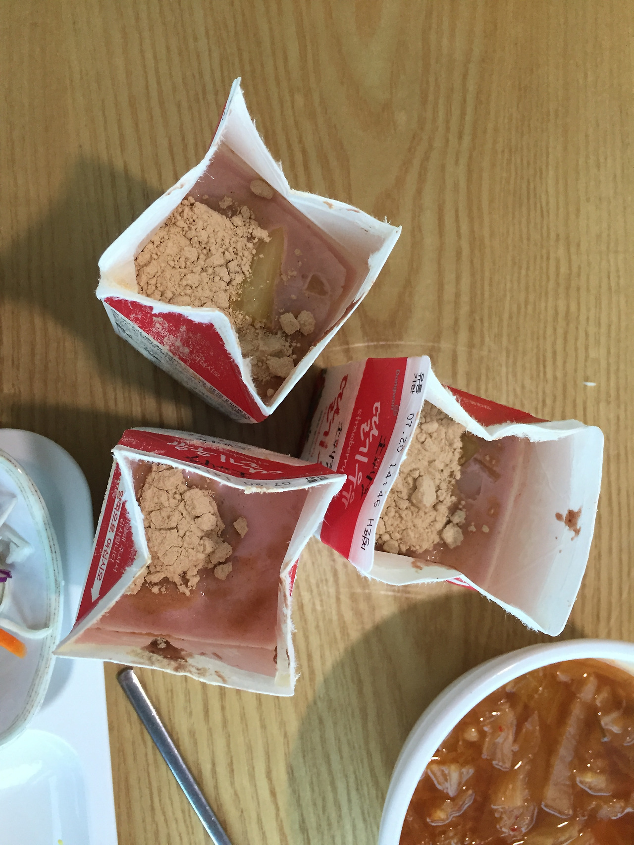 여름이라서 딸기 우유에 콩가루를 넣어서 빙수같이 준비해 주셨더군요. 정말 시원하고 맛있었습니다.