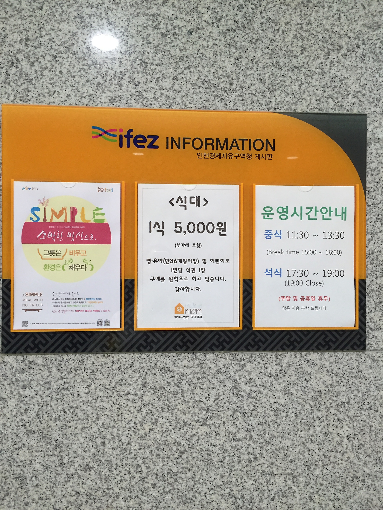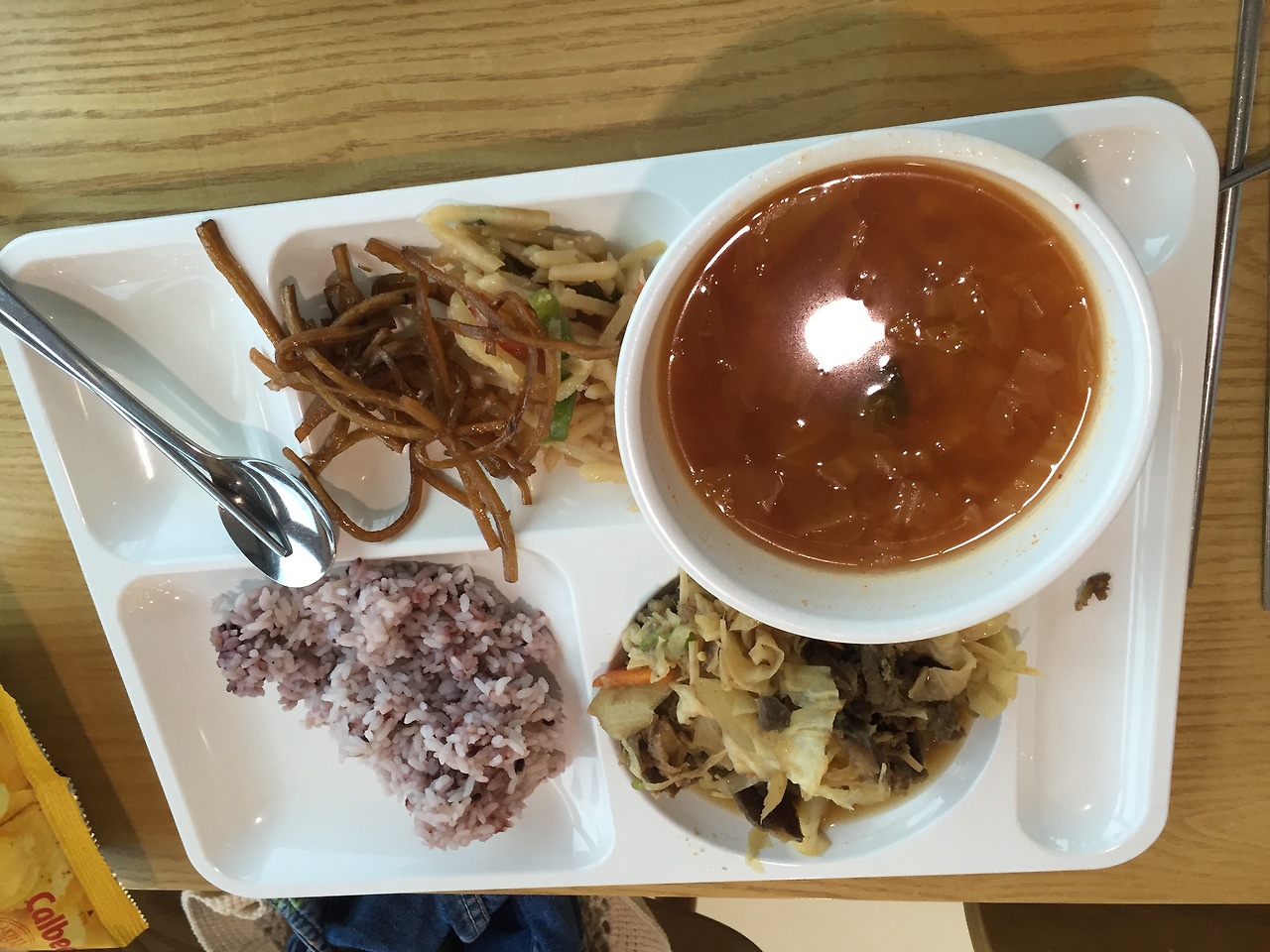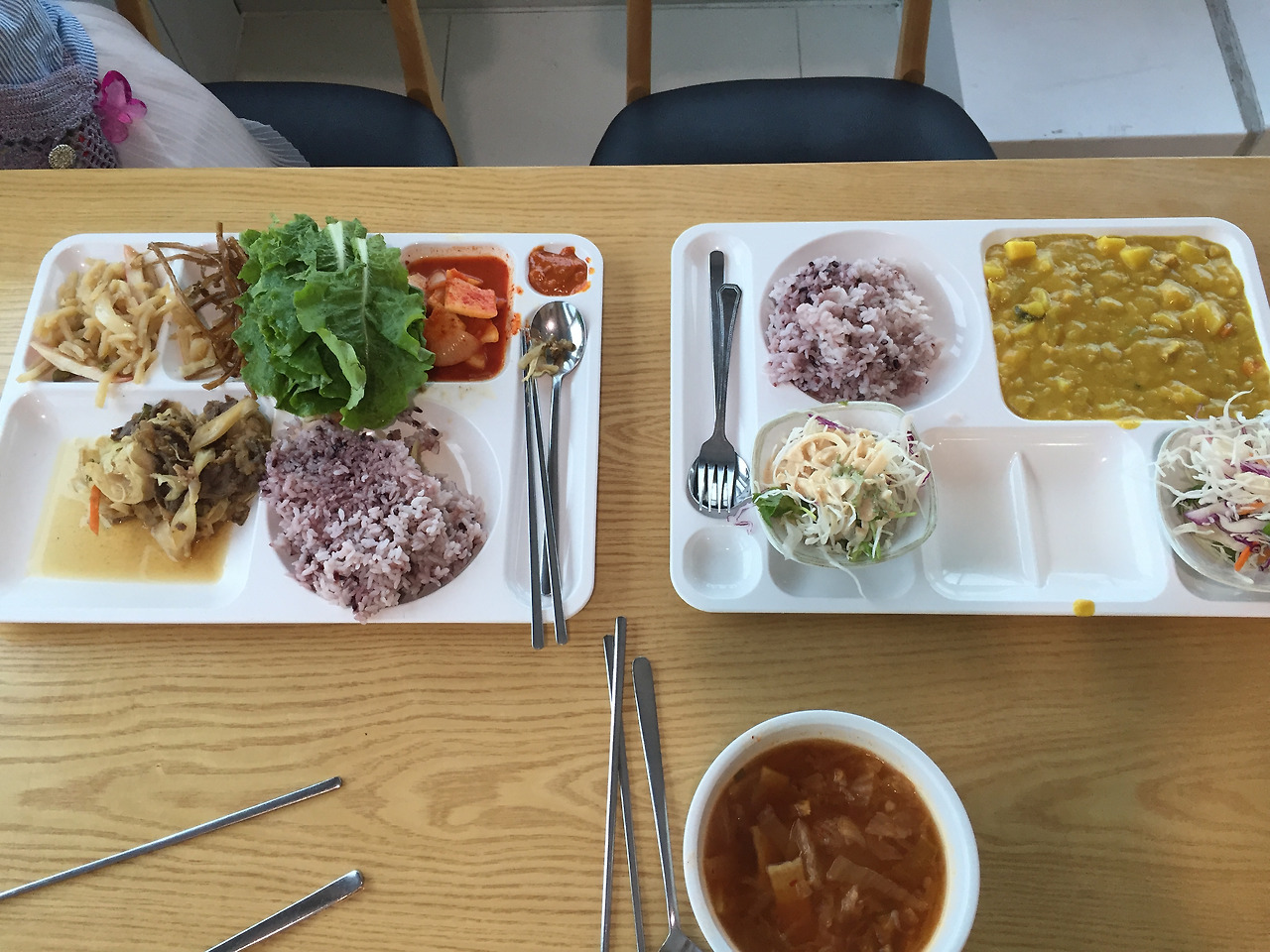보통 2개의 코스가 있고 사내 식당같이 잘나옵니다. 아울러 마음껏 가져다 드실 수 있습니다. 보통 이런 식당은 영양 사분들이 계셔서 잘 챙겨 주십니다. 위생적으로도 좋고요.