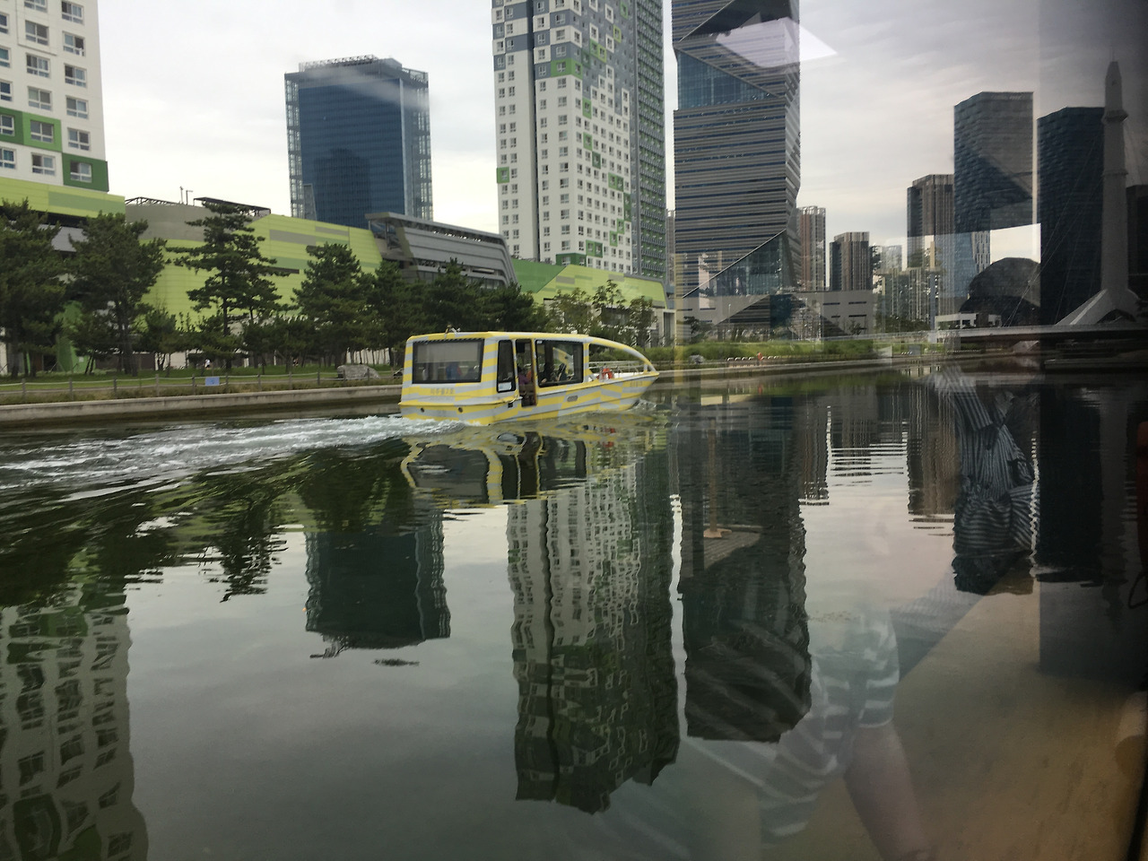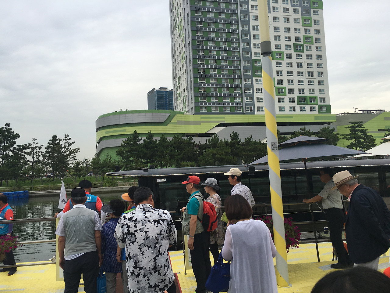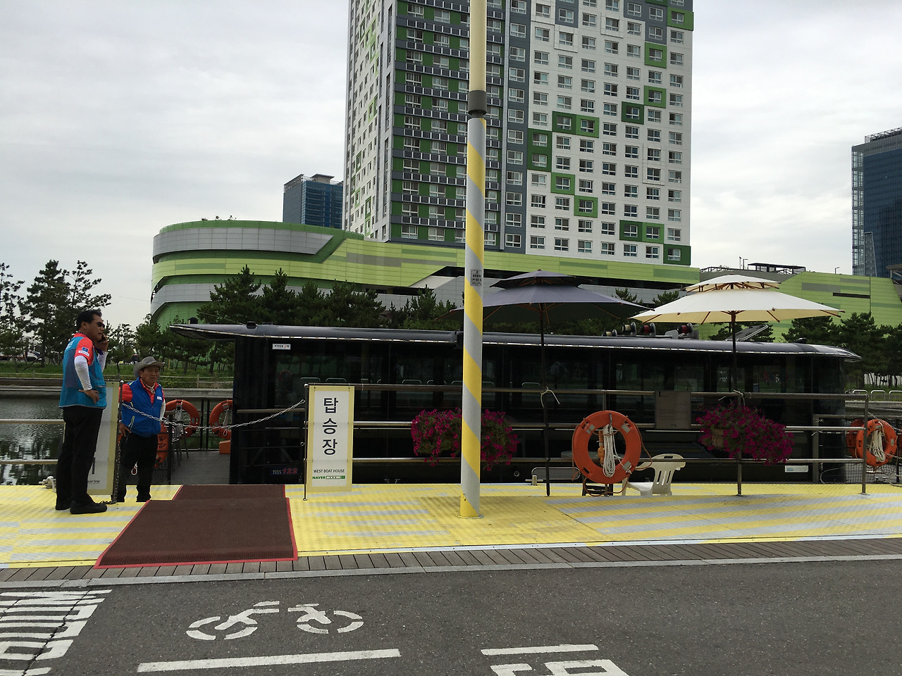 인천 송도에서는 수상택시를 이용할 수 있습니다. 택시라고 해서 출발지와 도착지가 다른 게 아닙니다. 호수 한번 돌고 오는 겁니다.