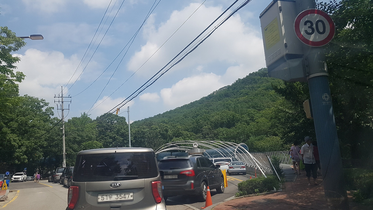 가족들은 먼저 계곡에서 놀도록 하고 순서를 기다렸다가 주차하고 합류 했습니다. 5대 기다리는데 한시간 정도 소요된것 같습니다. 그래도 에어컨을 켜고 기다릴만했습니다.