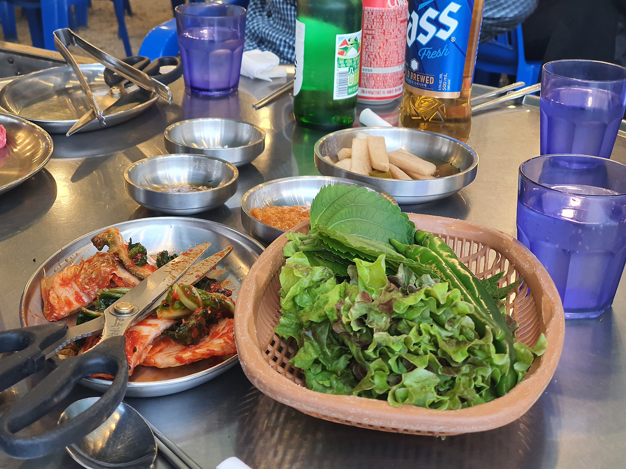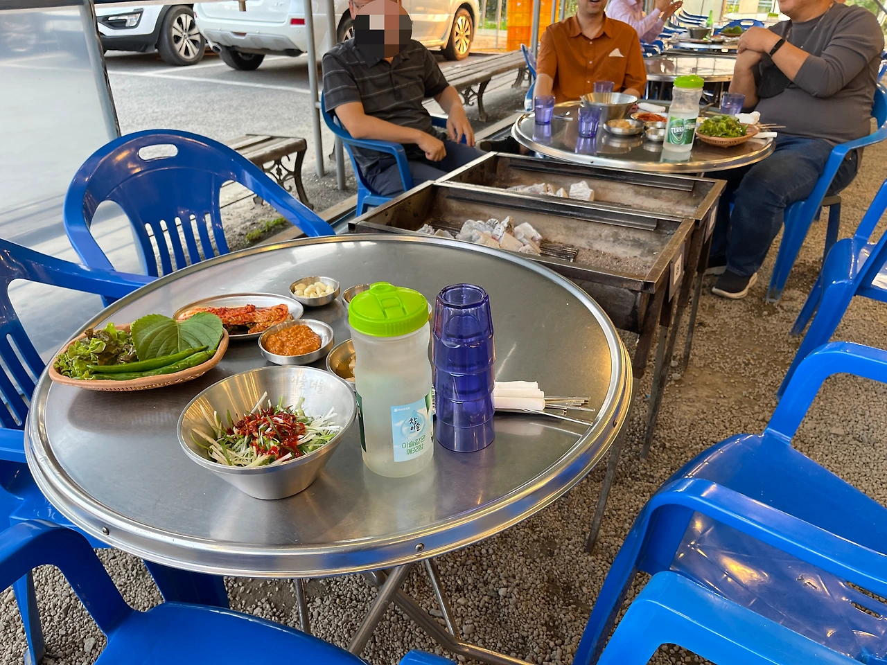 다른 식당과 달리 좋은 점은 이런 술이랑 같이 구워 먹는것들을 가져 가도 된다는 점이 좋아요. 고기와 식사만 주문하고 가져 간것들을 같이 구워 먹는 느낌 참 좋습니다.