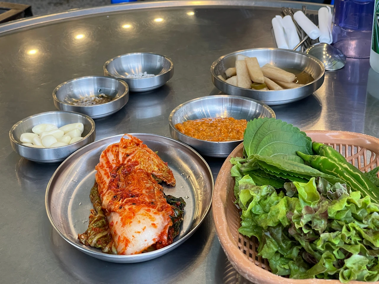 기본 상차림의 경우 사잔과 같이 야채와 같이 나옵니다.