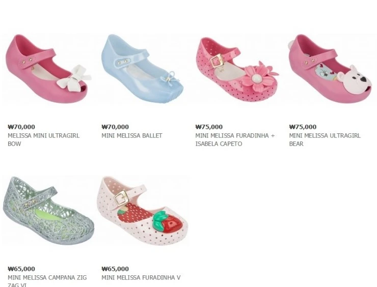 작년에 크록스가 유행했다면 올해는 멜리사입니다. 작년에 멜리사가 없었던 건 아니었지만 올해는 확실히 미니 멜리사가 떠는 신발입니다.