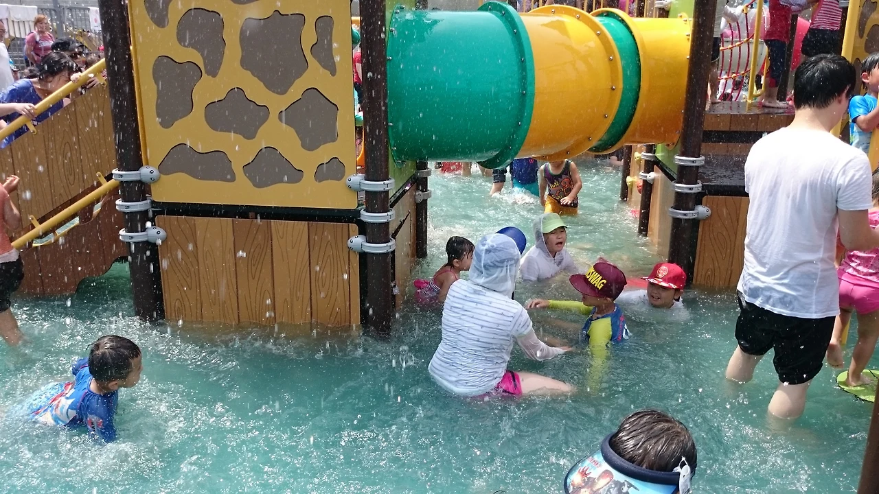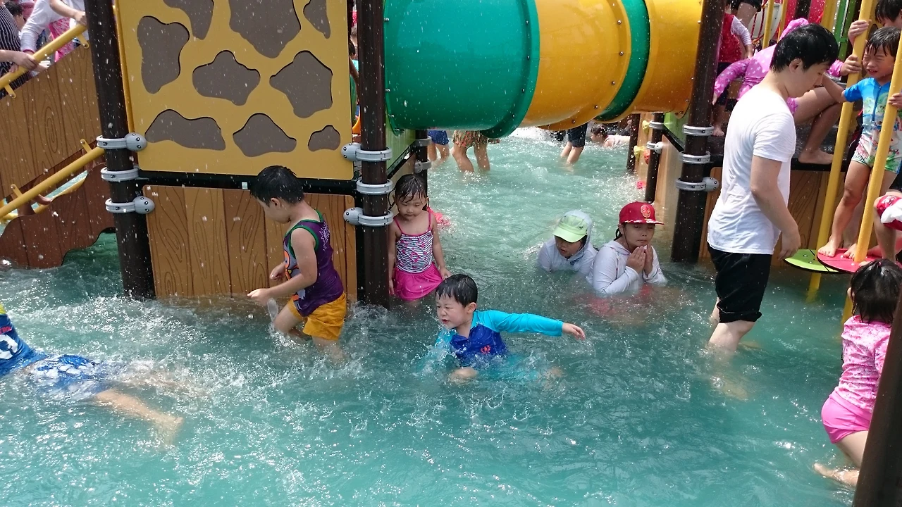 시설을 보시면 영육아를 위한 공간과 어린이들을 위한 공간이 나누어져 있습니다. 그리고 물높이가 아이들에게 안전한 물높이입니다. 그래도 아이들은 넘어지면 당황하므로 부모님들이 항상 주변에 있으셔야 합니다. 아이들 넘어 지면 얕은 물에도 위험할 수 있어요.