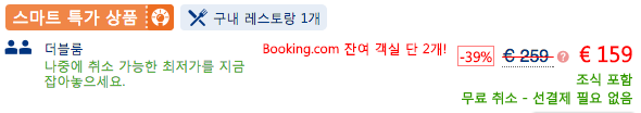 예약비와 취소수수료가 0원이다. 은근 이런 deal이 많다. 보통은 예약할 때 10% 정도를 선결제하는데, 이런 게 없는 꿀 같은 프로모션이 종종 있다.